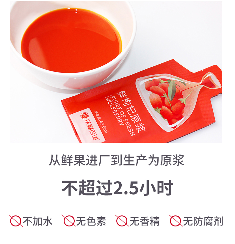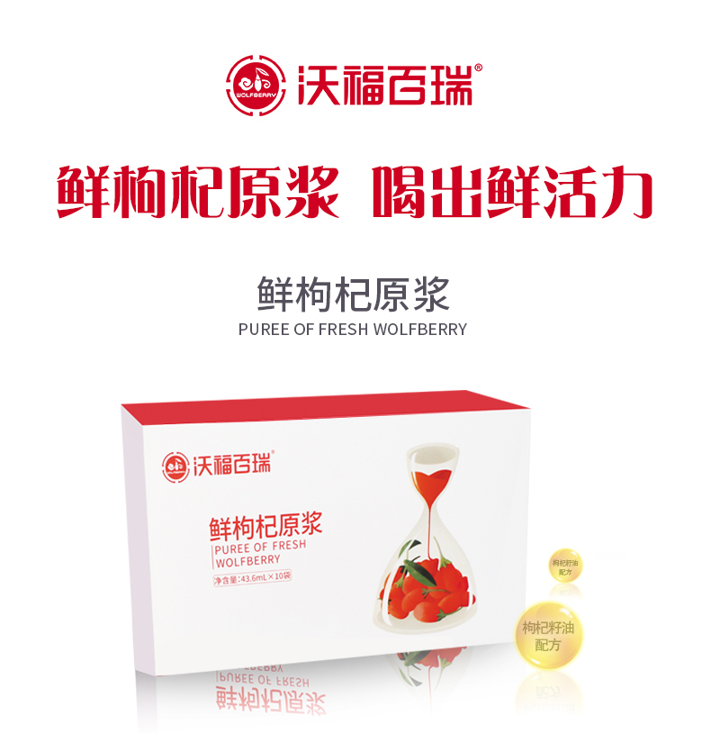 沃福百瑞枸杞原浆红枸杞汁宁夏鲜枸杞子原液43.6ml*10袋