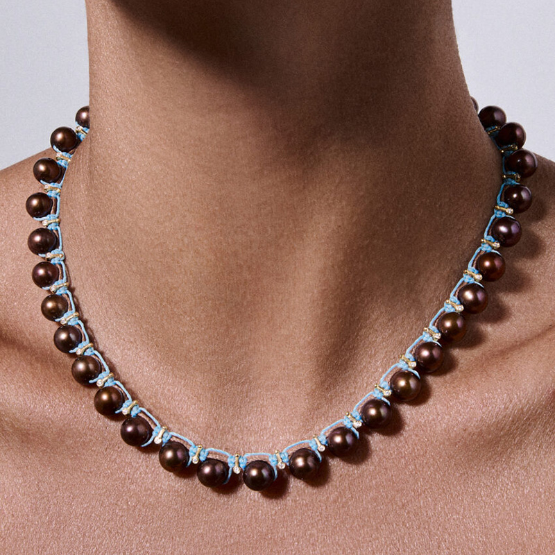 订购10周到|CHRISTIANA KAFA-root-蓝线 棕色淡水珍珠 项链[希腊设计师]