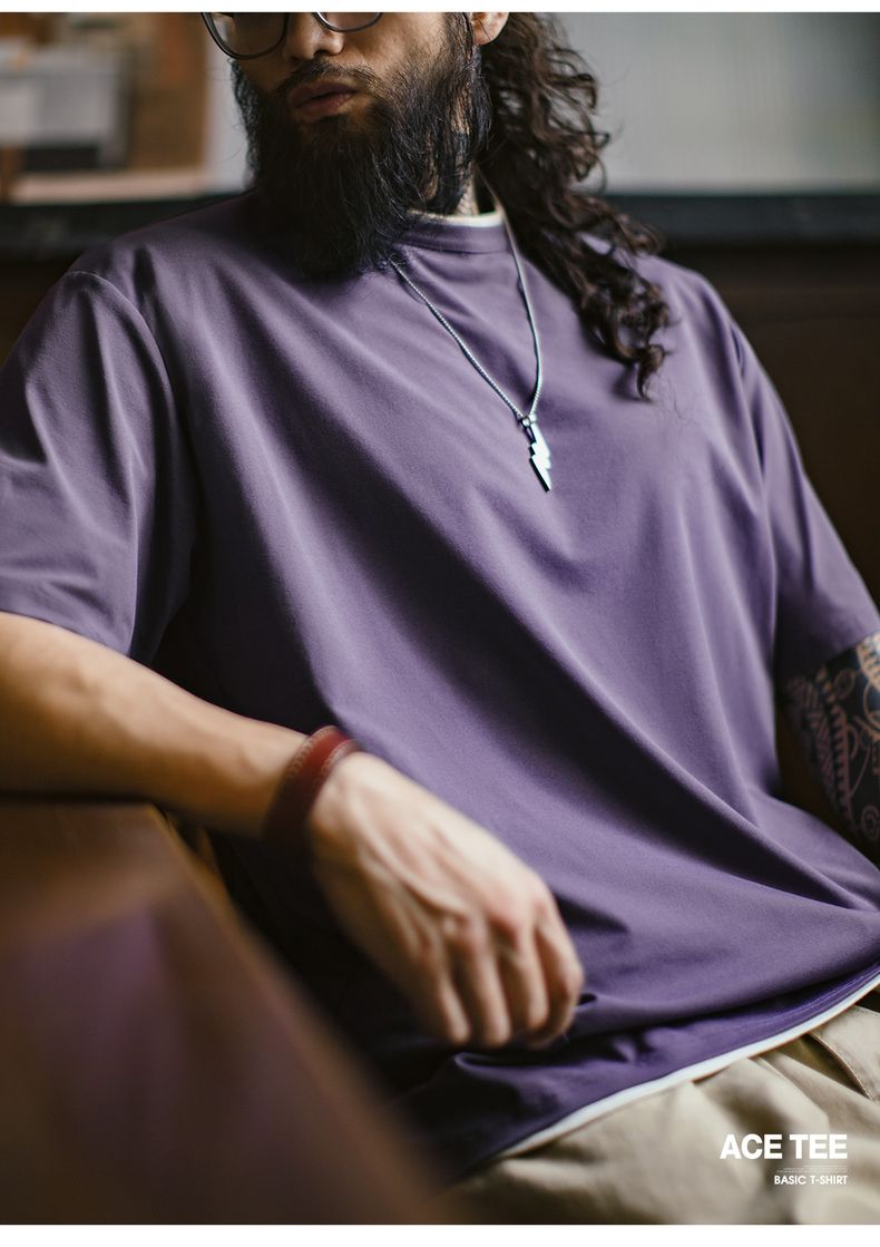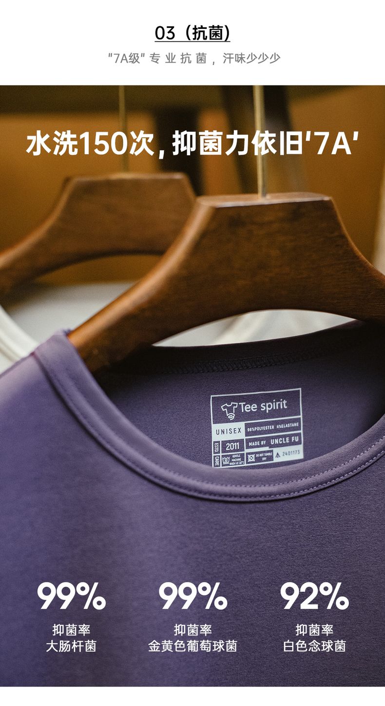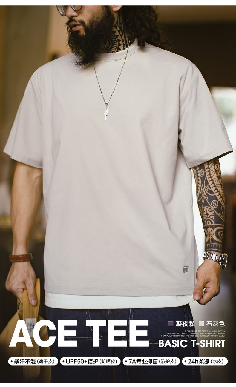 马登工装美式速干凉感紫色T恤防晒抗菌冰感宽松圆领短袖半袖男夏