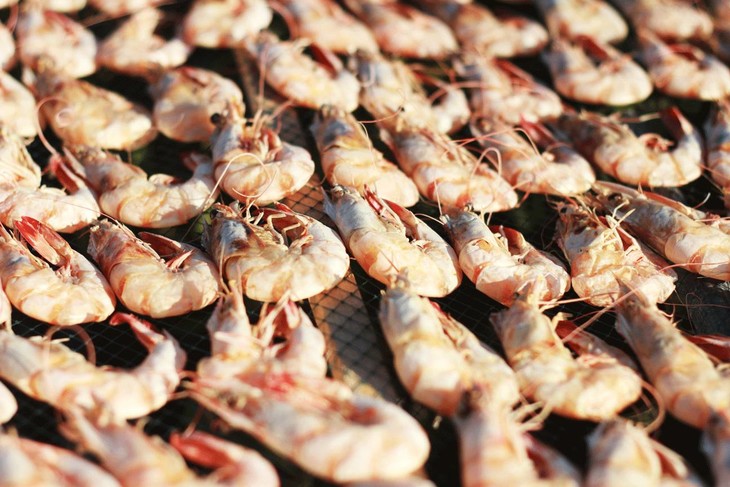 ▲晒好的虾干肉紧实,咸香浓,拿到手忍不住剥几只啪叽啪叽吃了。