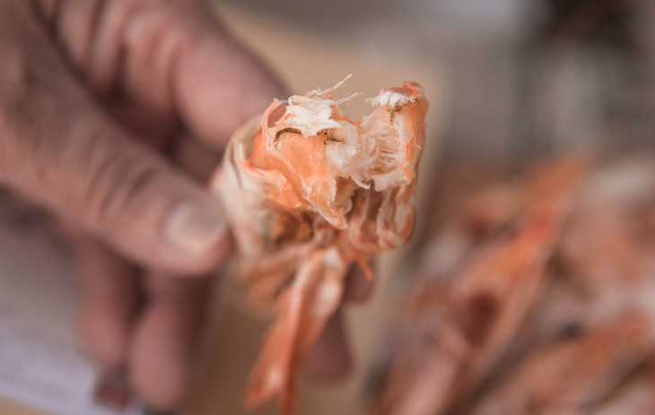 ▲海里原生虾生长周期较长,不像养殖虾,所以含钙质较高,晒出来的虾壳会偏灰白一些,连同虾壳一起食用,是补钙很好用的法子。