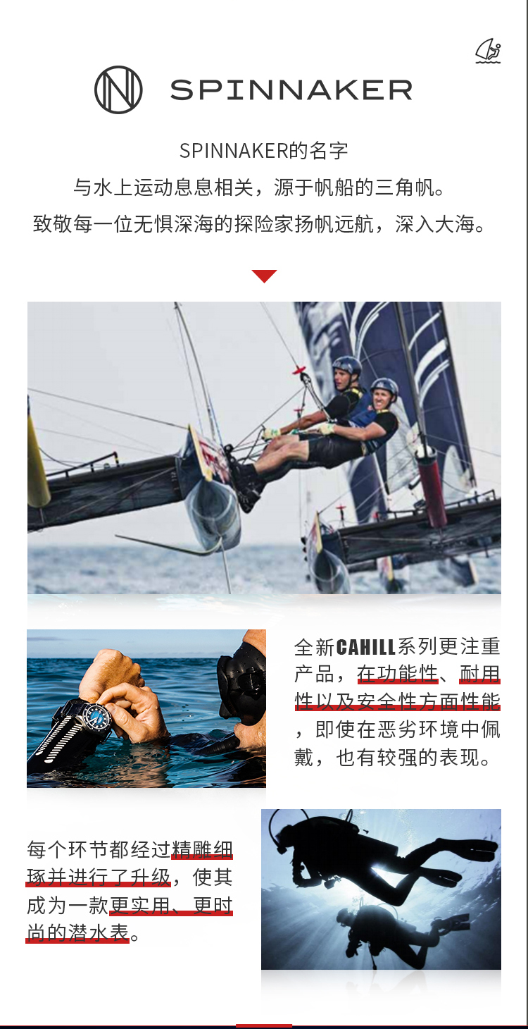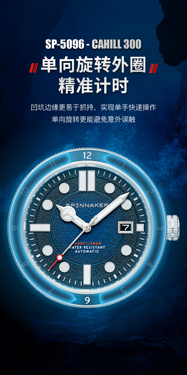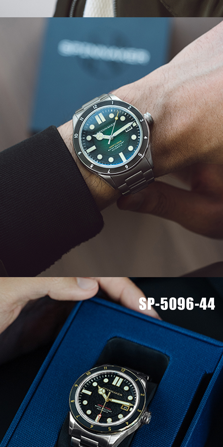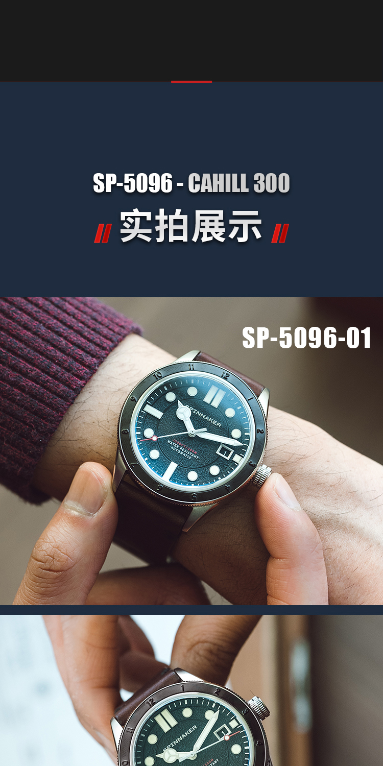 新款|英国SPINNAKER三角帆复古自动机械潜水手表CAHILL夜光5096