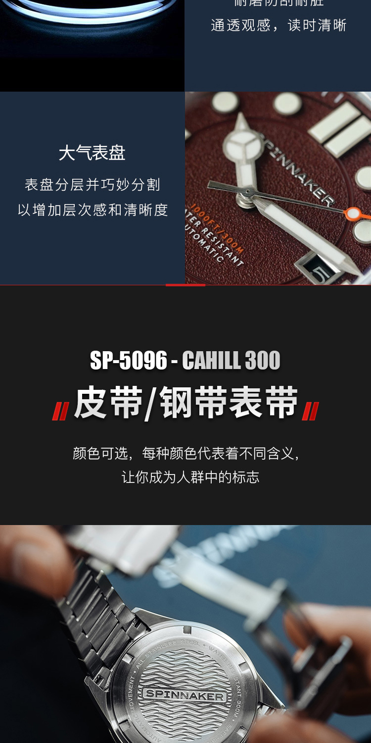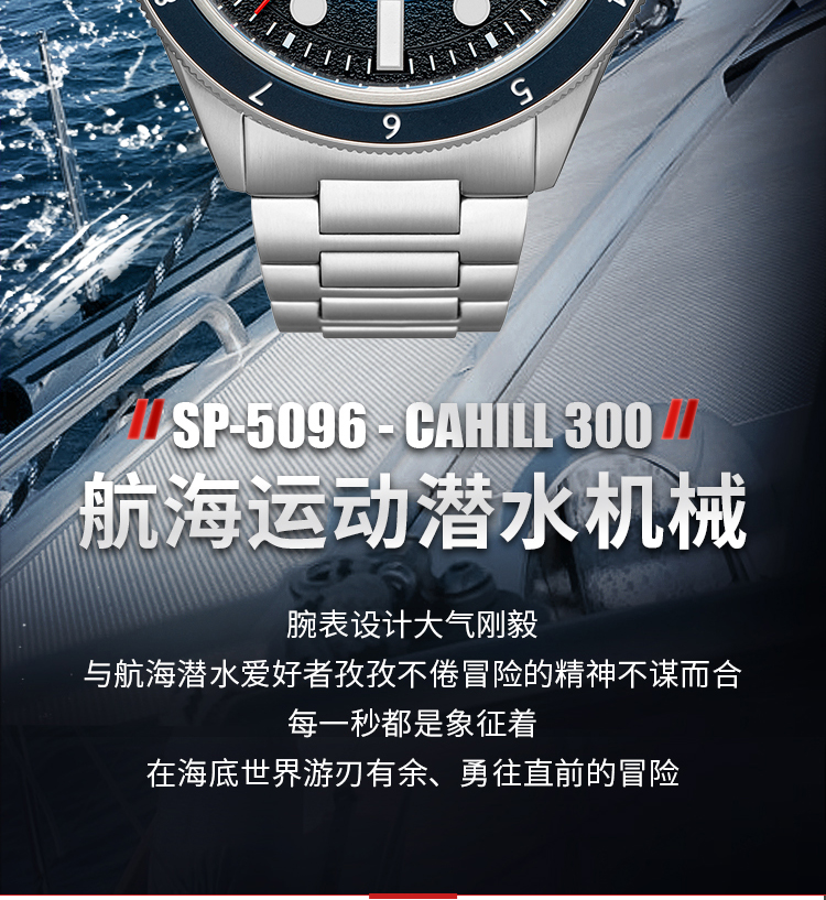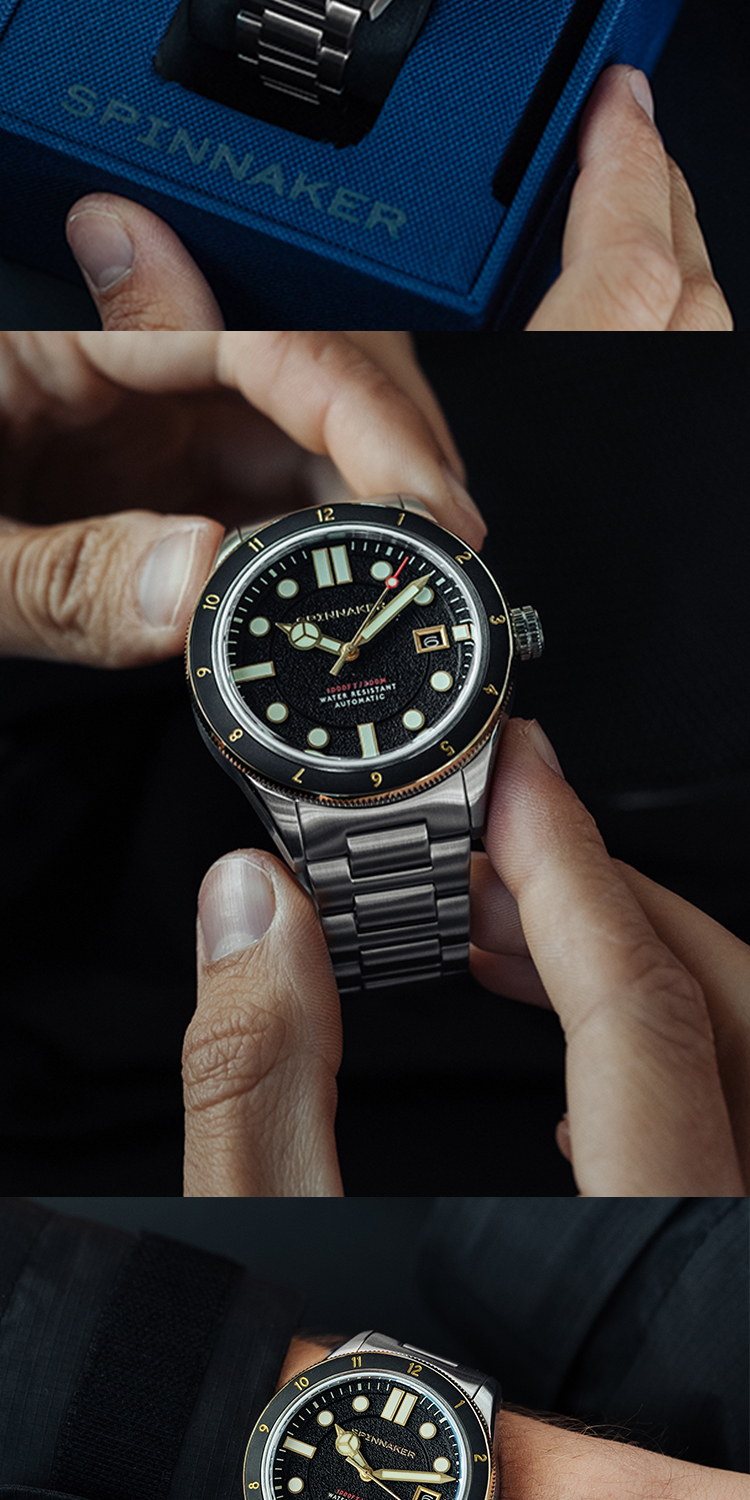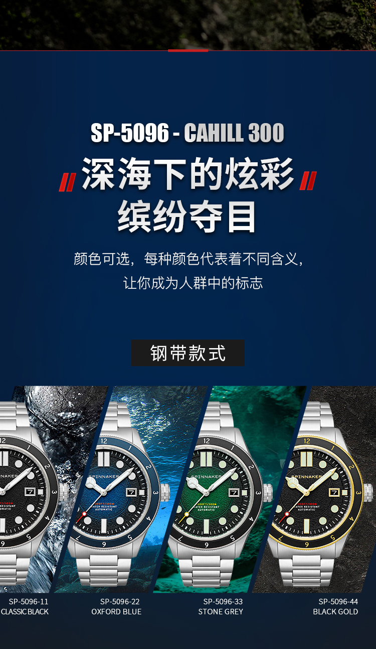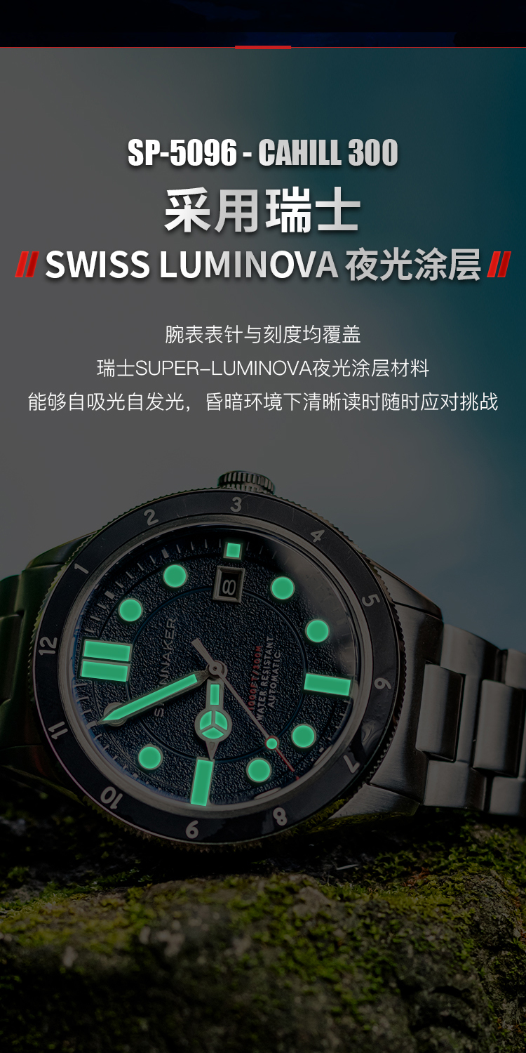 新款|英国SPINNAKER三角帆复古自动机械潜水手表CAHILL夜光5096