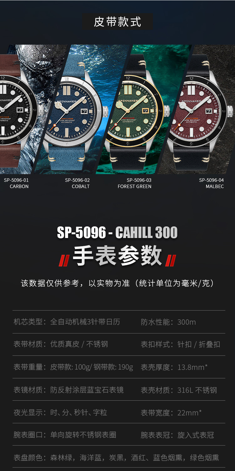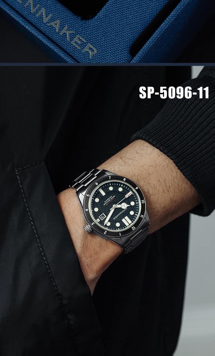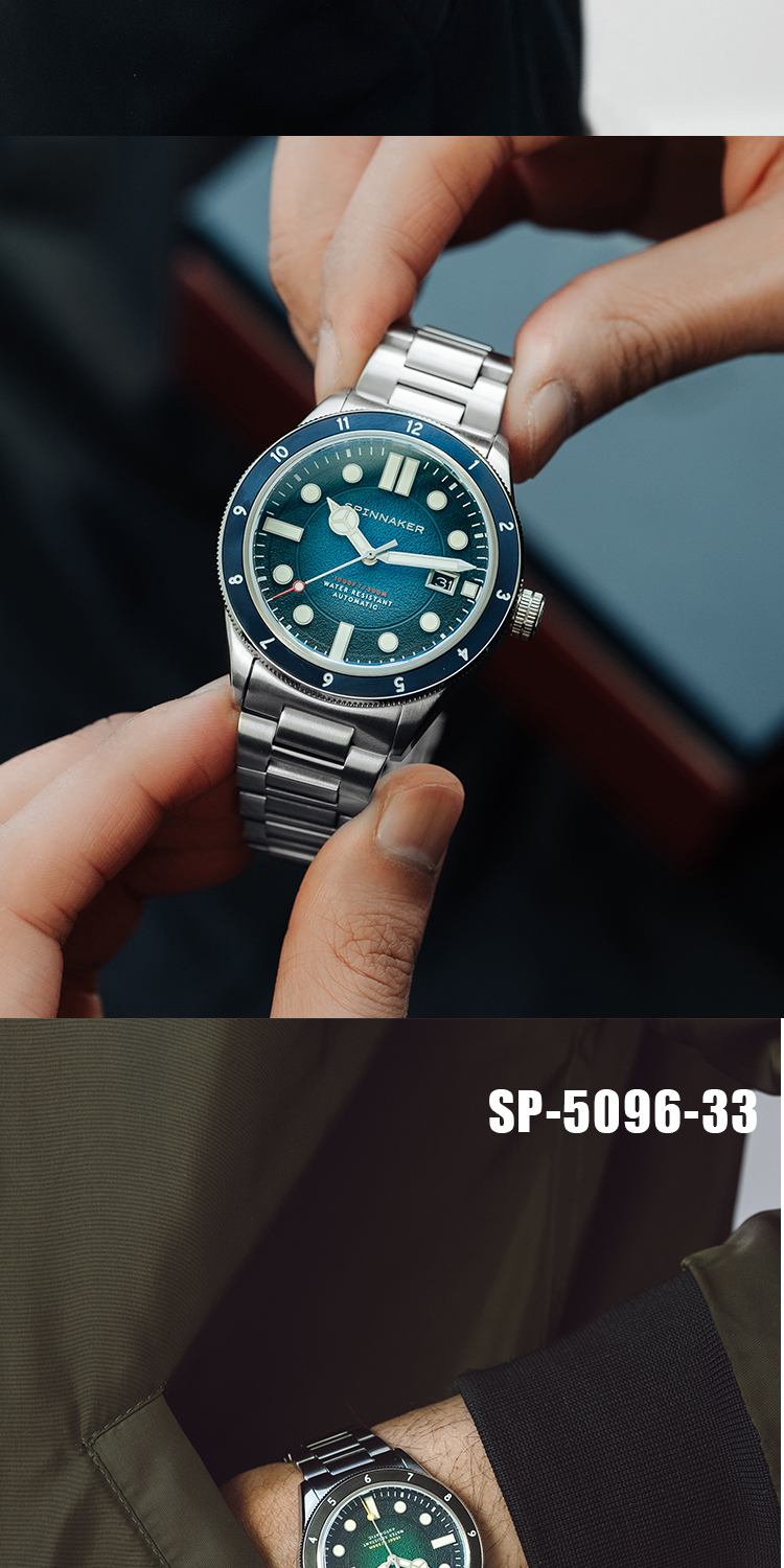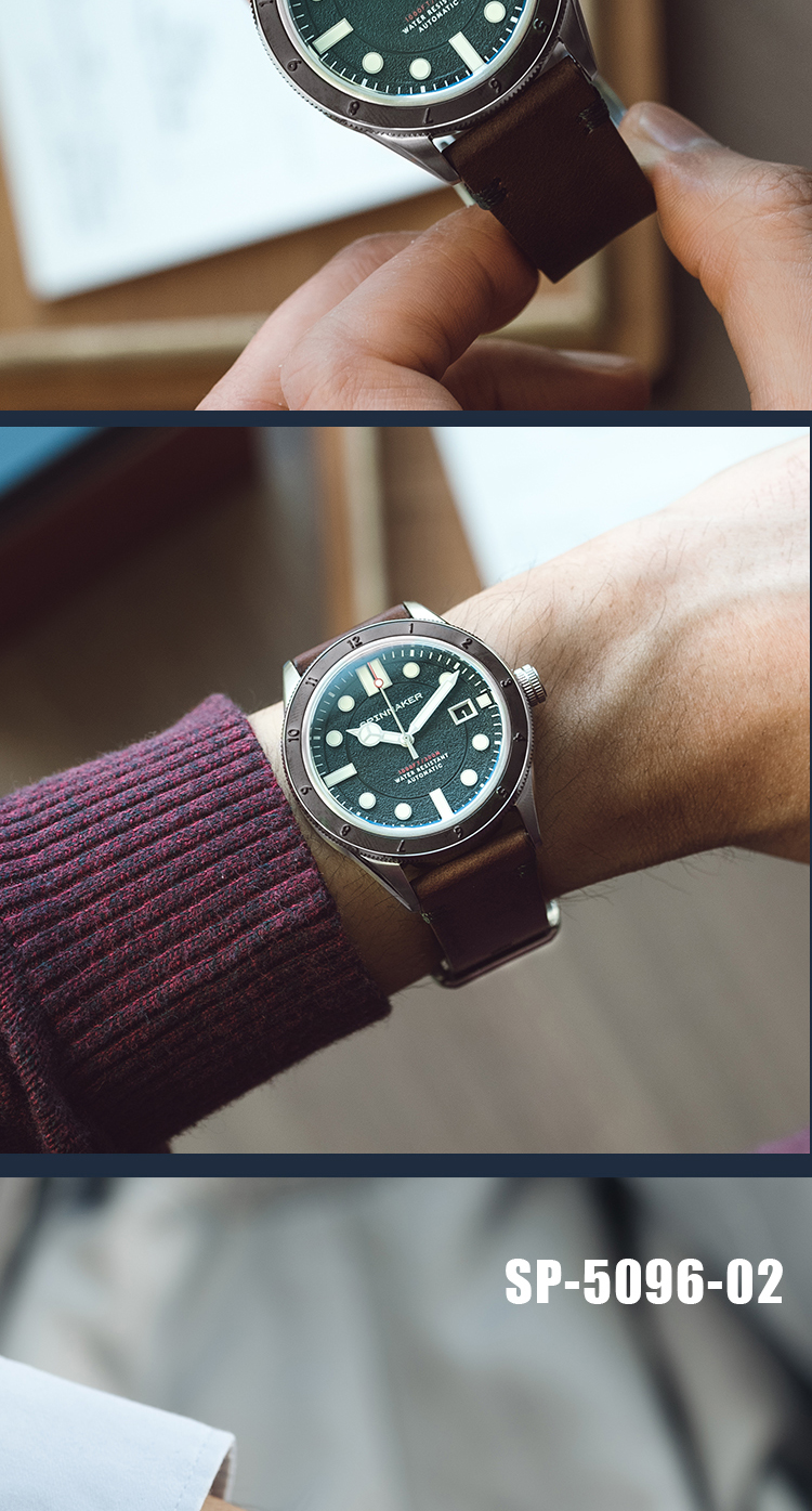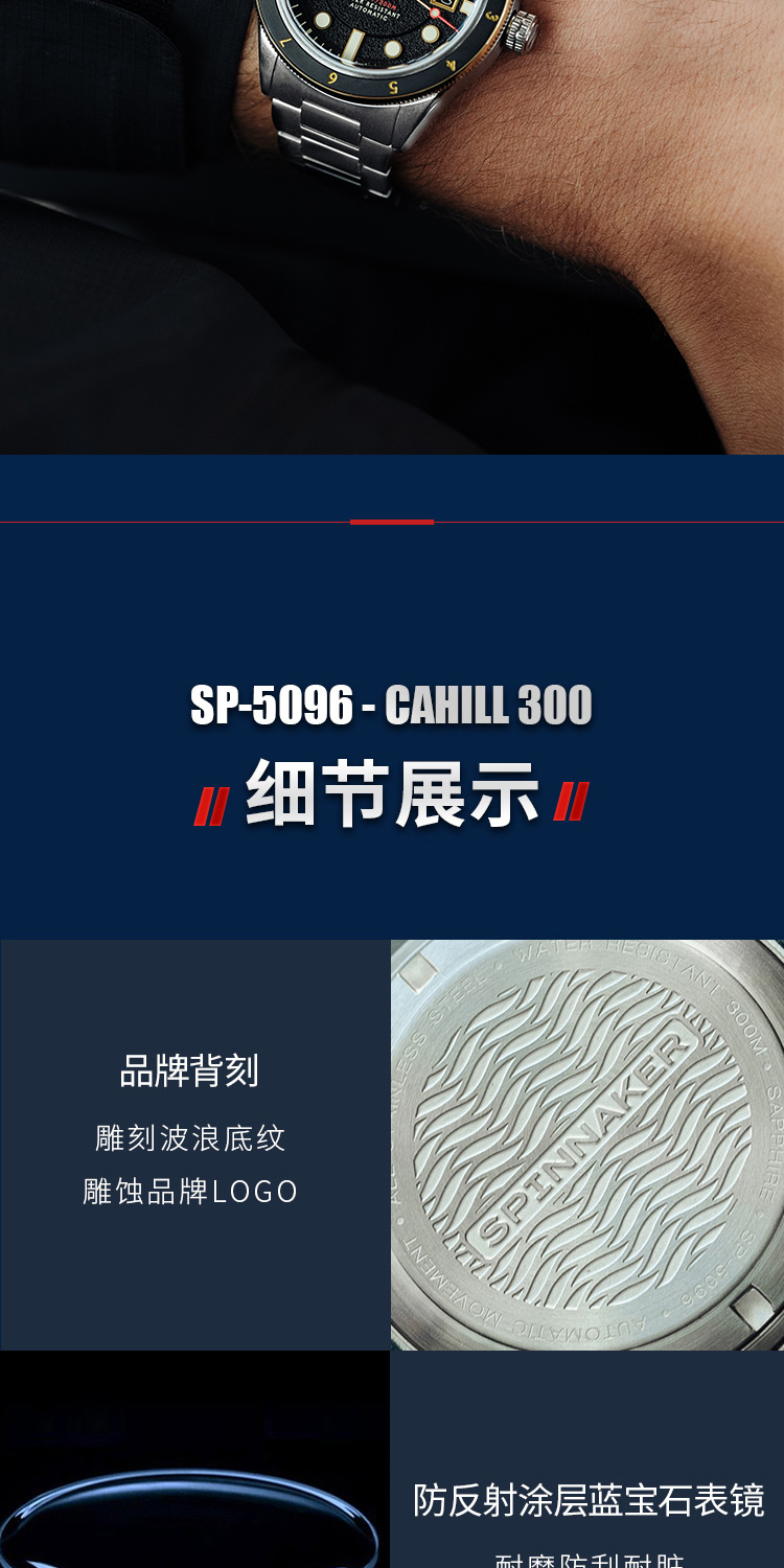 新款|英国SPINNAKER三角帆复古自动机械潜水手表CAHILL夜光5096