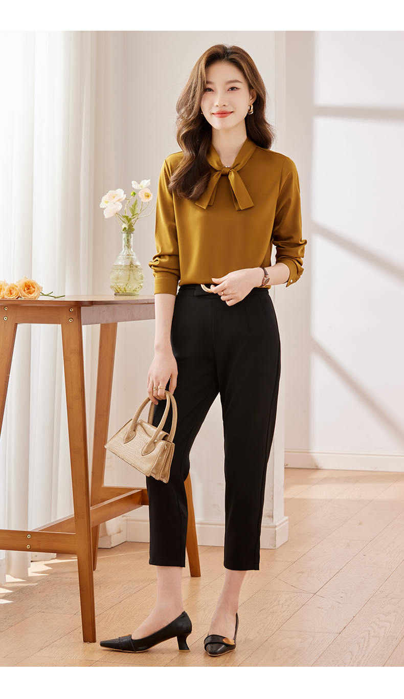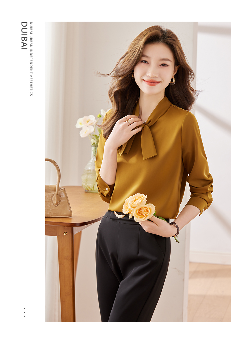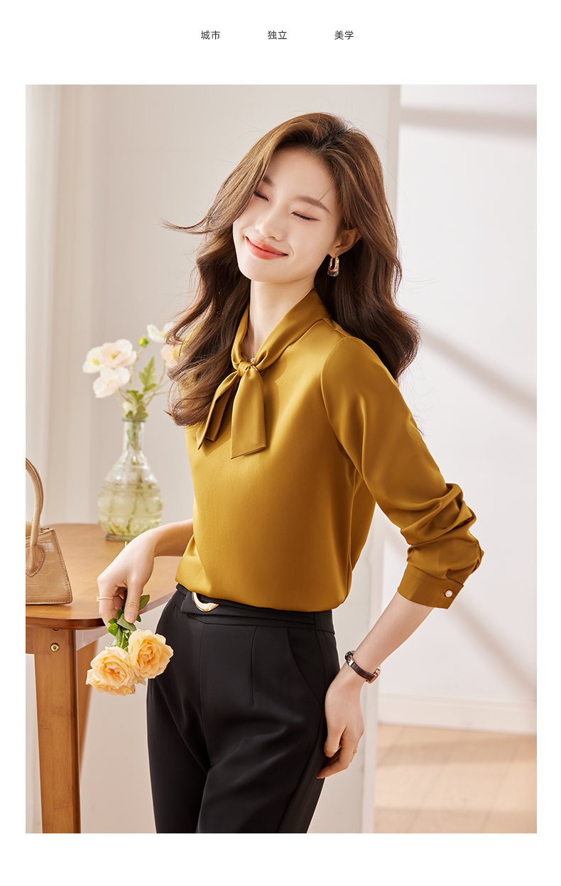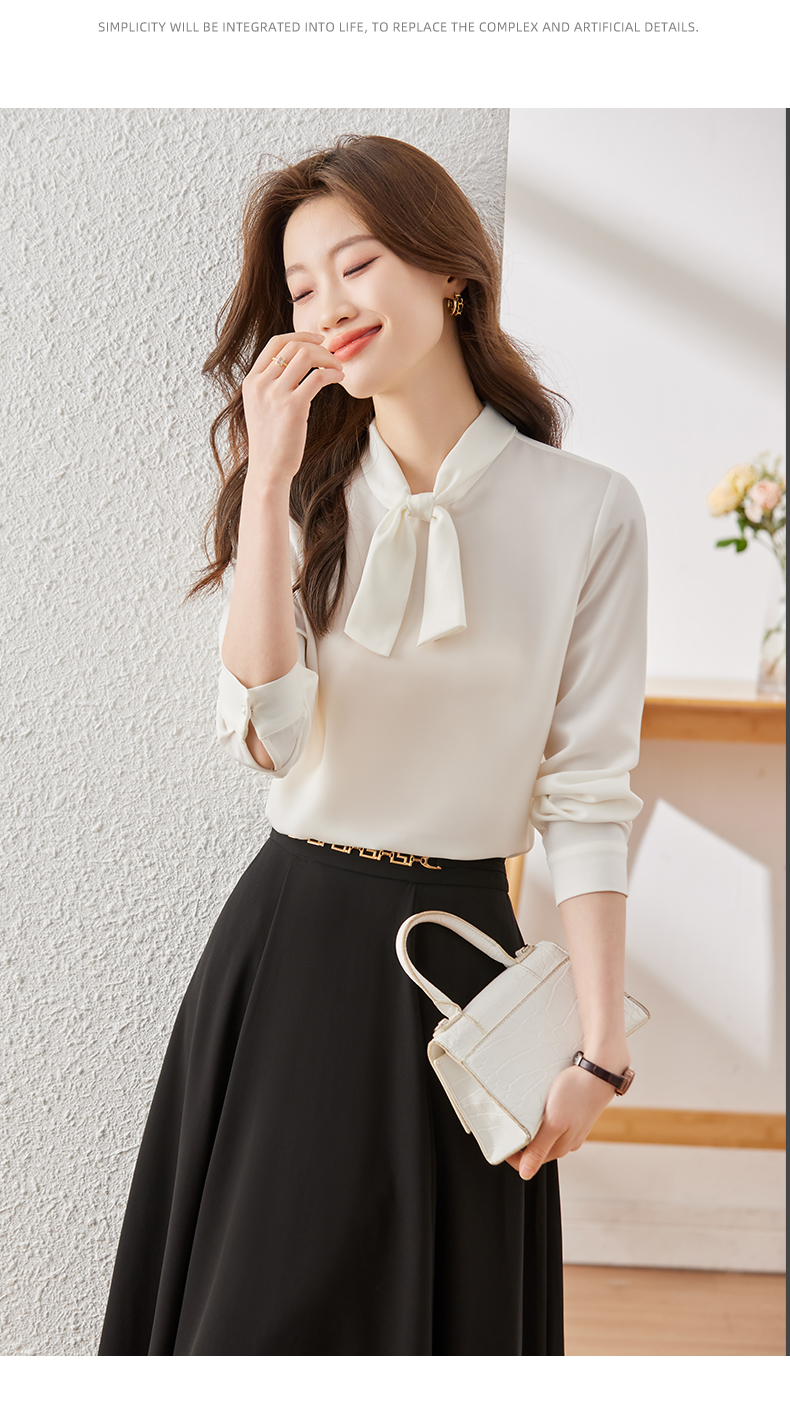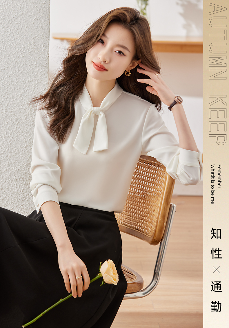 Q6896新款长袖衬衫百搭小众洋气系带显瘦时尚春秋宽松纯色韩版