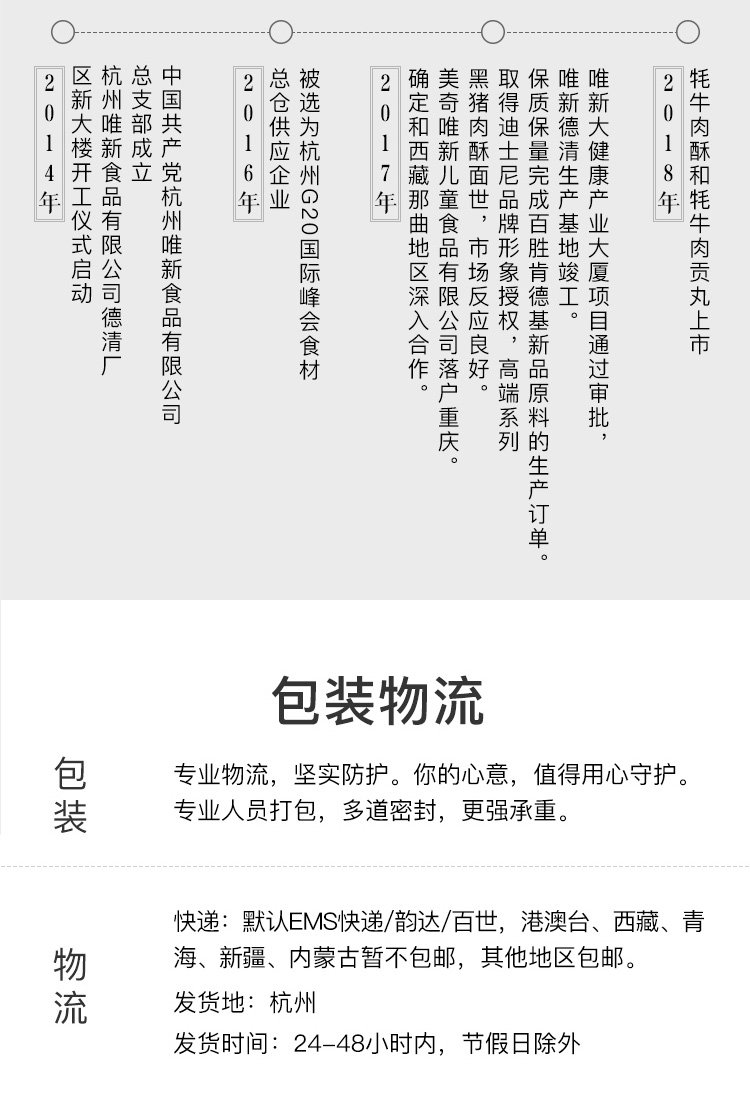 - 唯新食品始于1992年,品质承诺。