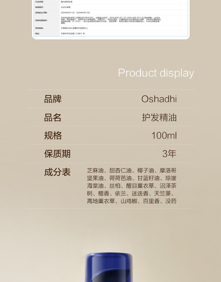 oshadhi德国O家护发油100ml 护发精油 按摩油