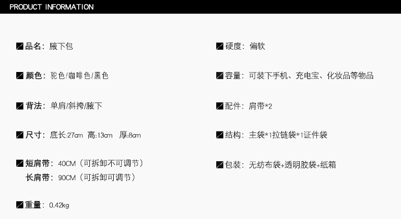 【预售3天】2025新款宽肩带腋下包女高级感时尚小众单肩斜挎女包9244-D