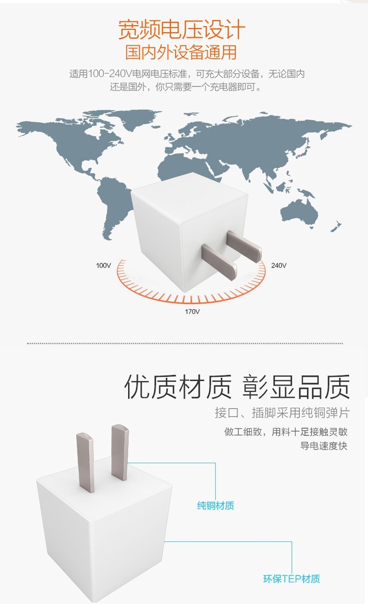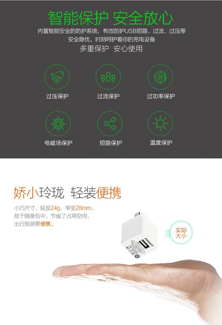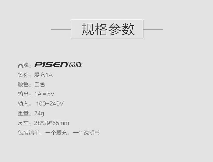 【充电器】品胜手机充电器 3C认证快速充电插头