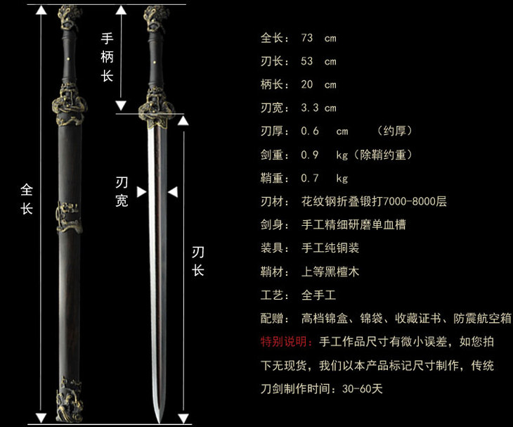 大明永乐剑 沈州作品 龙泉沈广隆宝剑 传统剑 工艺品 未开刃