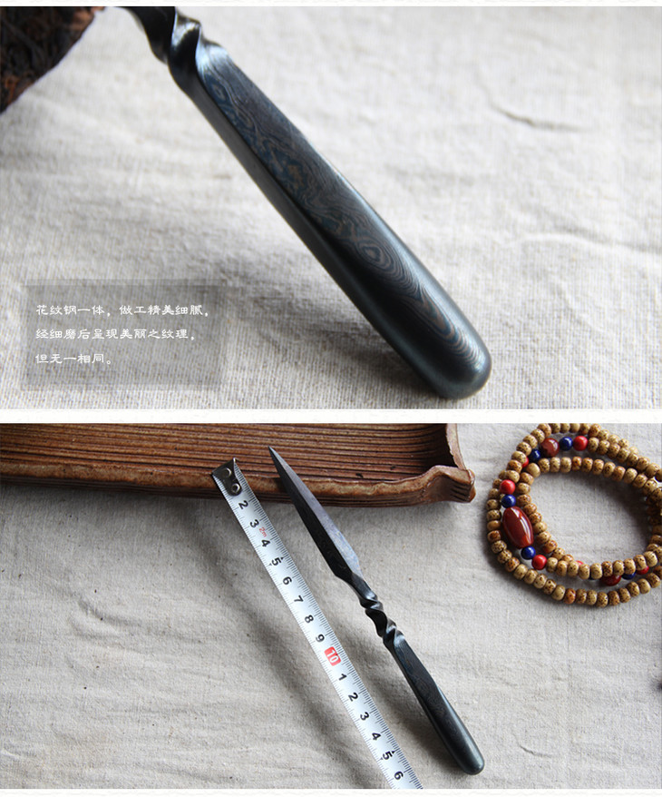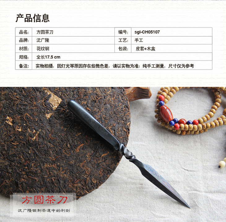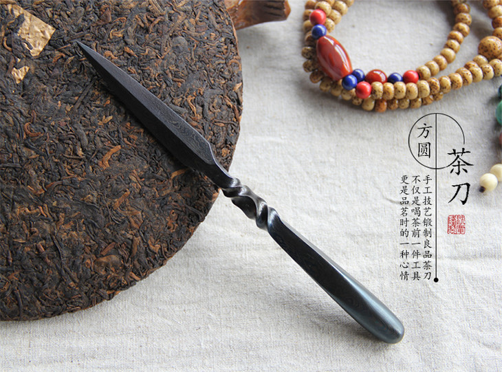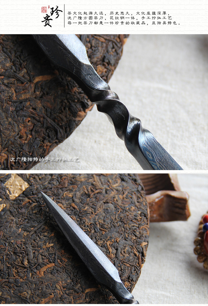 方圆茶刀 沈广隆剑铺 花纹钢 龙泉茶刀 普洱茶针 未开刃sgl-CH05107