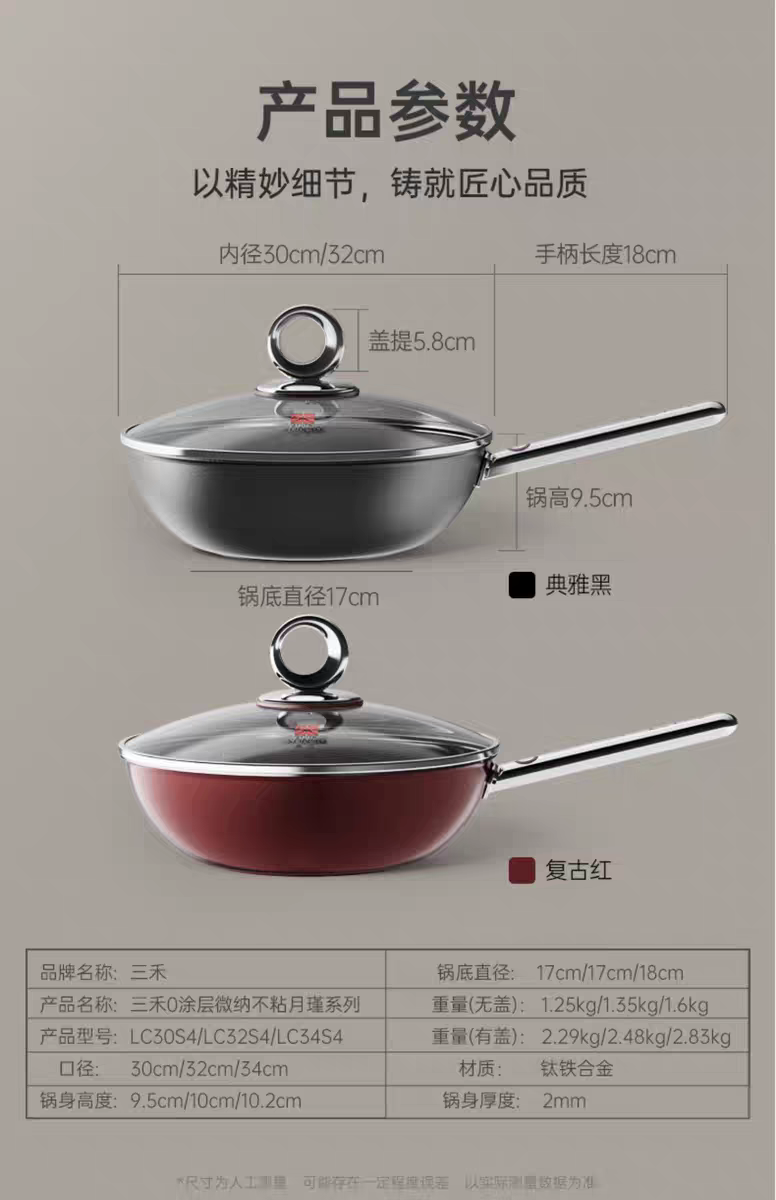 【6F】三禾0涂层微纳不粘炒锅LC30/32/34S4