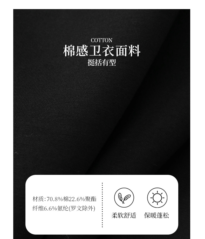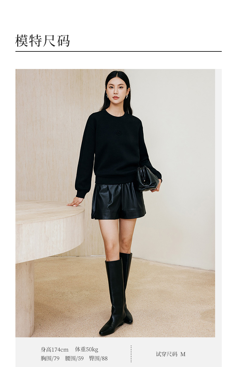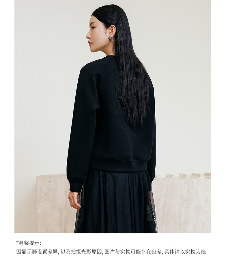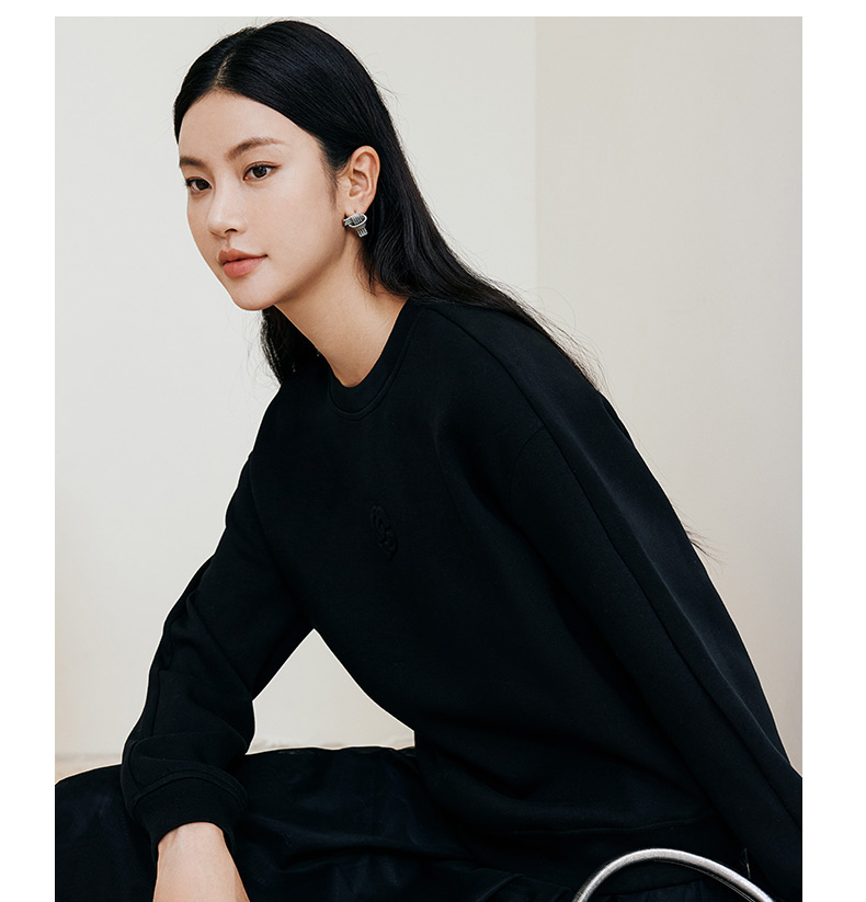 玳莎黑色压花圆领卫衣2024冬季新款通勤时尚休闲落肩袖内搭上衣女 ED32301