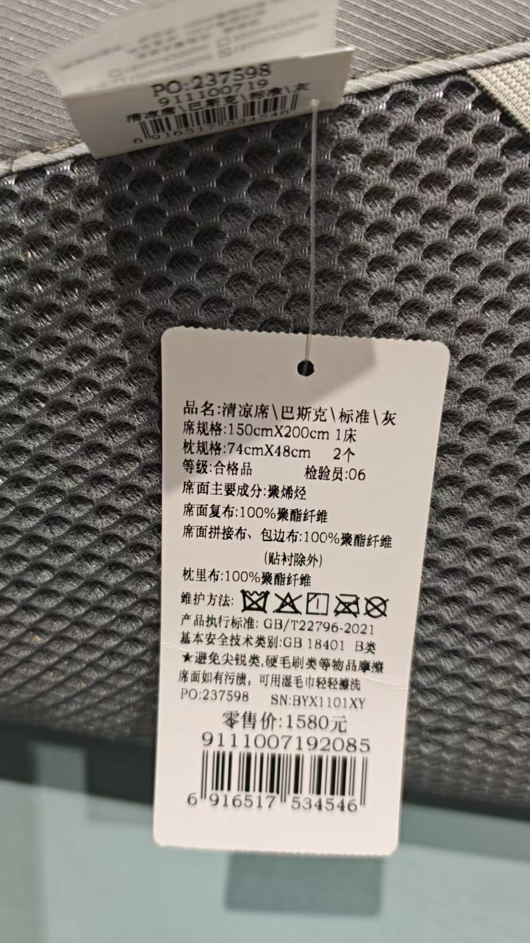 【6楼】富安娜清凉席\巴斯克,牌牌价1580~1780元
