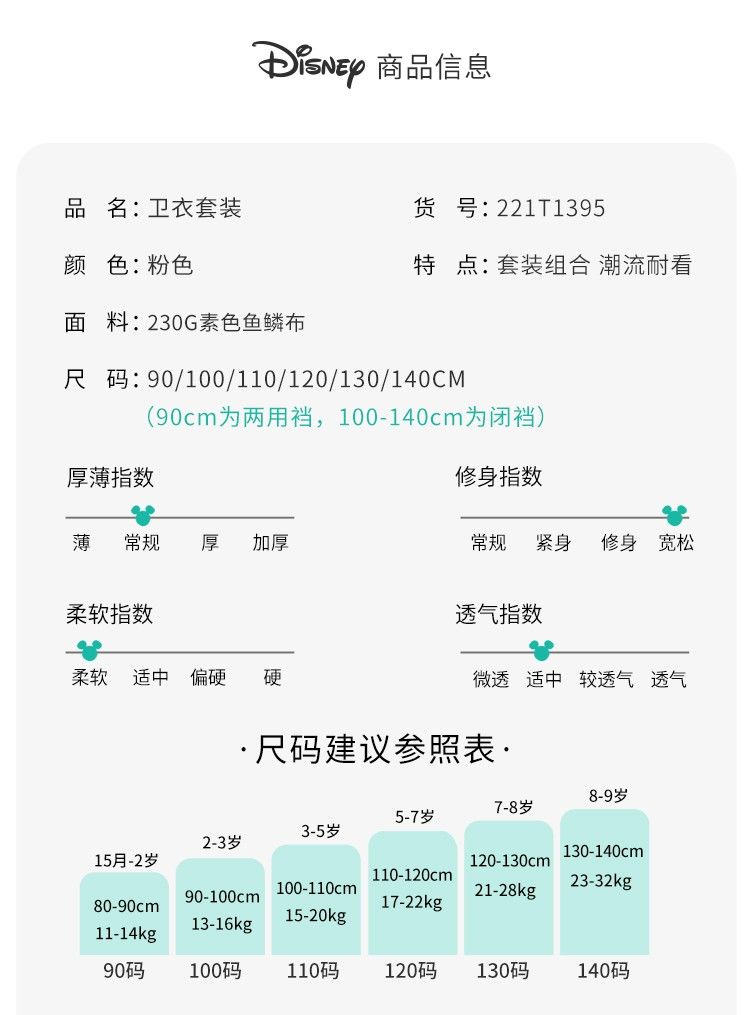 迪士尼童装儿童套装春装新款婴儿宝宝女童运动服两件套洋气221T1395