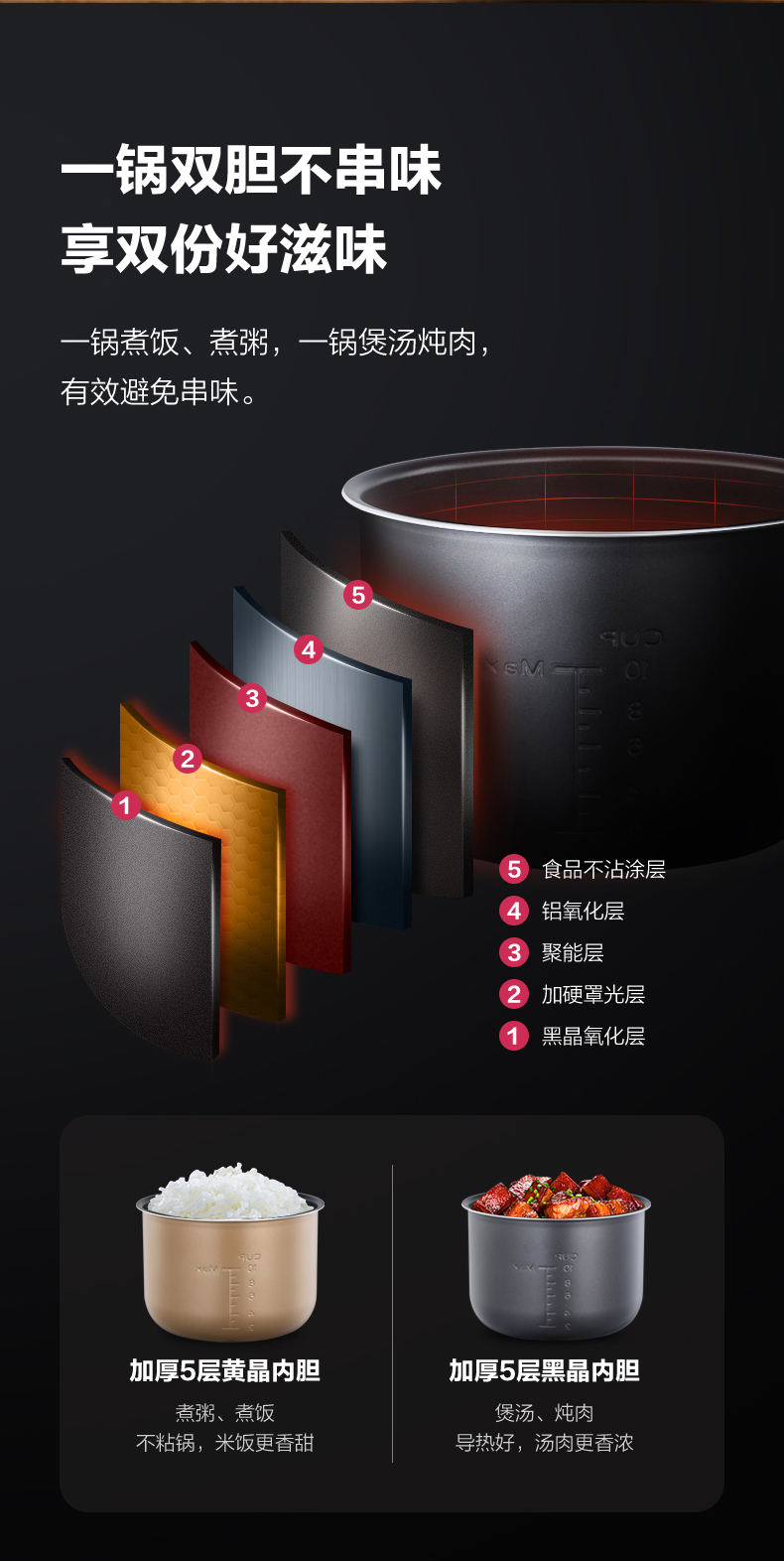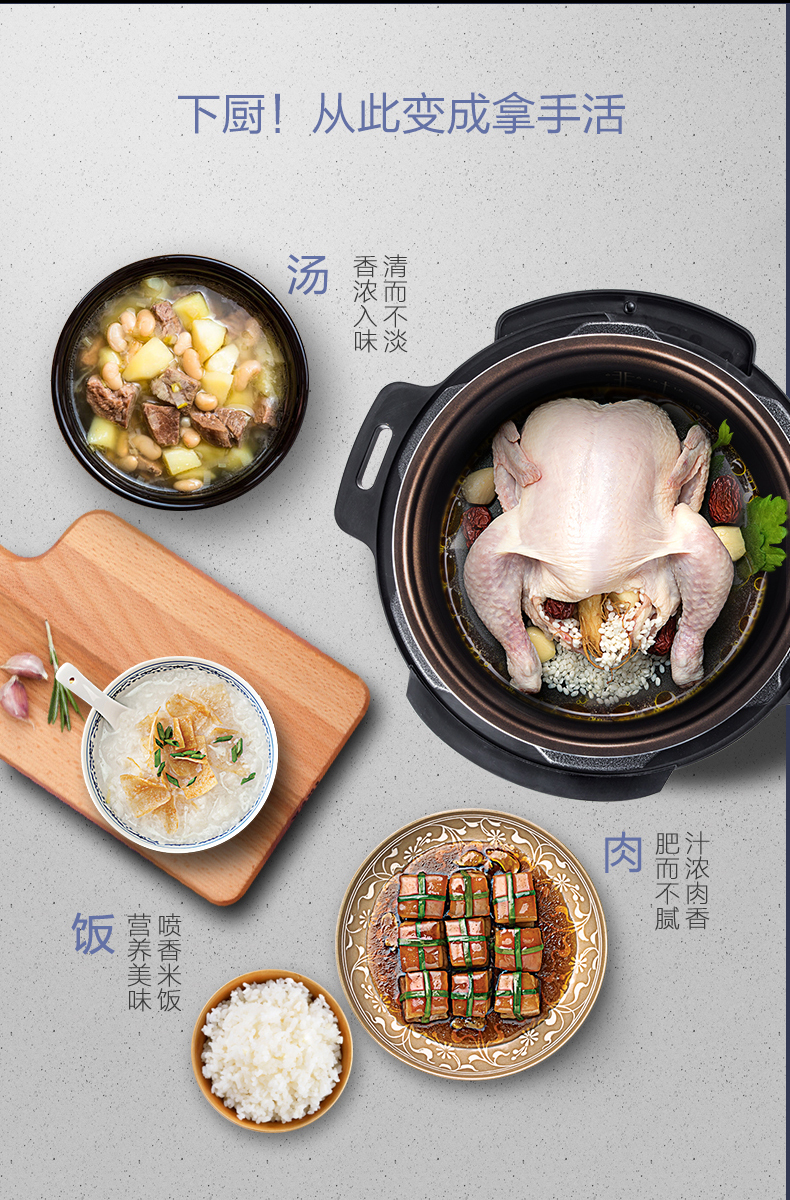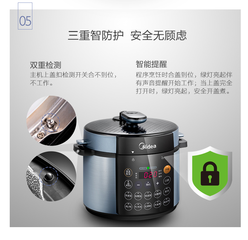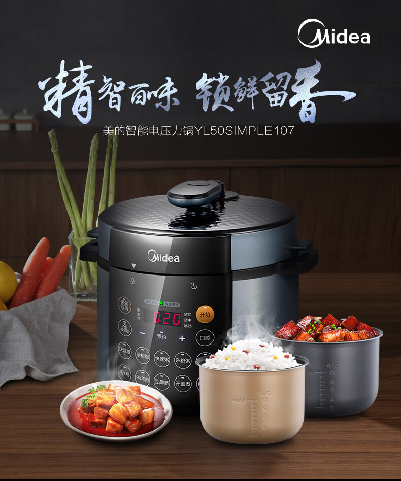 美的(Midea) 电压力锅双胆4.8L家用智能预约电高压饭煲4-8人电饭锅 MY-YL50Simple107