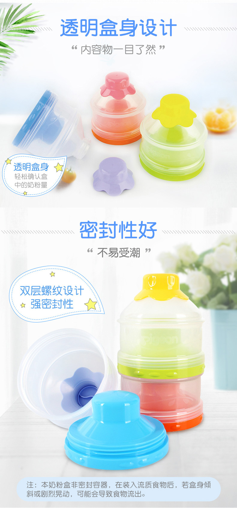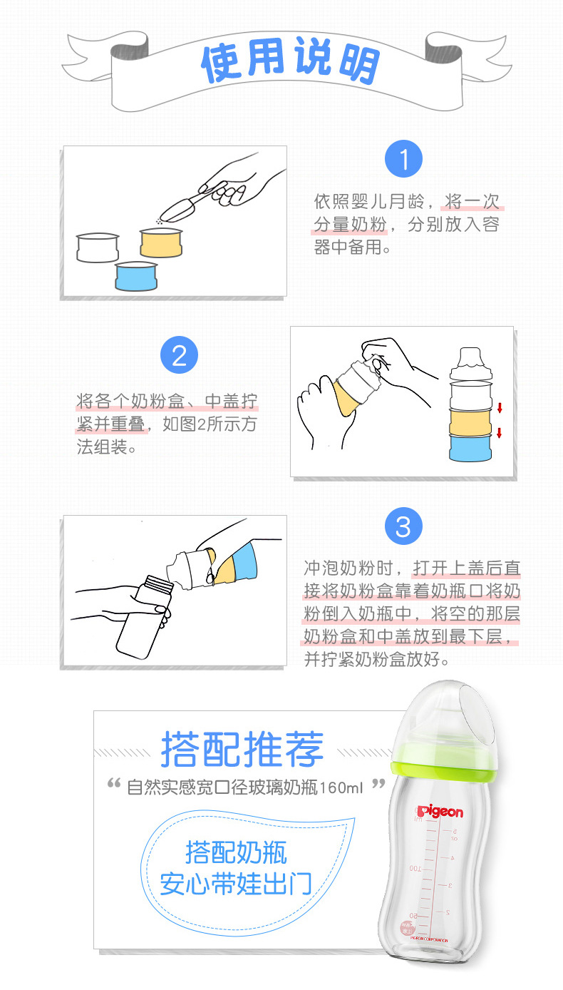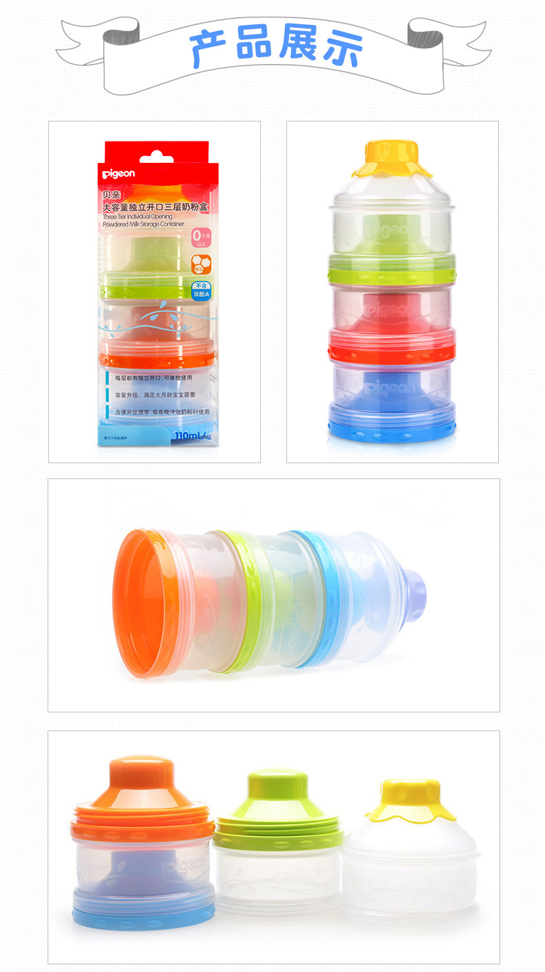 贝亲Pigeon奶粉格便携奶粉盒三层大容量婴儿奶粉储存盒宝宝用品CA07