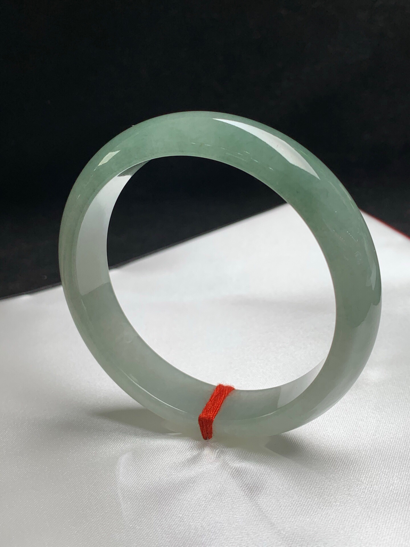 612931,60.3圈口,糯冰油青半山半水正圈平安镯,大圈口,种老水足,微透手,完美无裂,尺寸:60.3-14.5-7.5,超值价💰10500 #优石客珠宝#香玉荟萃