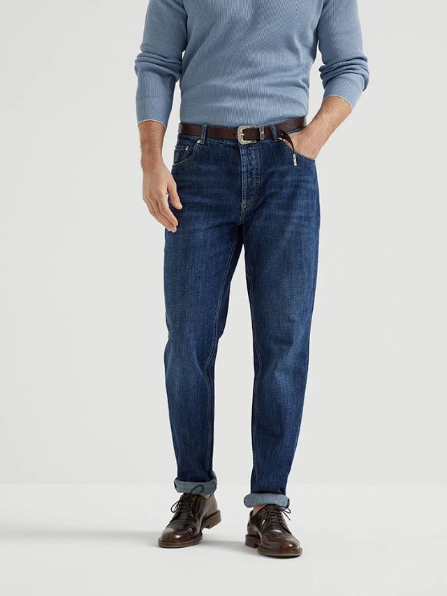 Brunello Cucinelli(BC)经典五袋直筒水洗牛仔裤