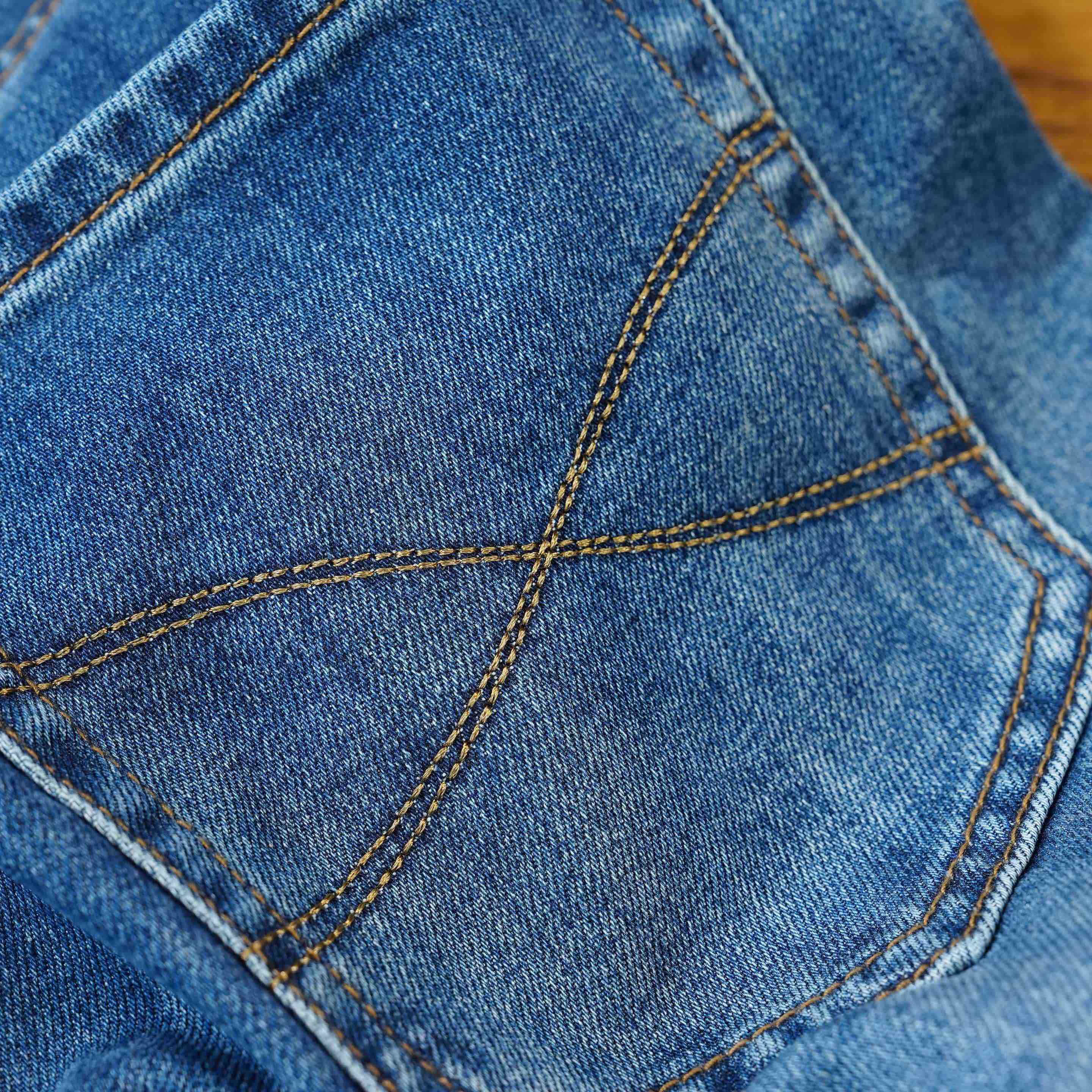 3. 重工水洗工艺:自然石磨+轻酵洗水,让牛仔布呈现柔和做旧感,颜色层次丰富,越穿越有复古韵味