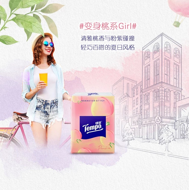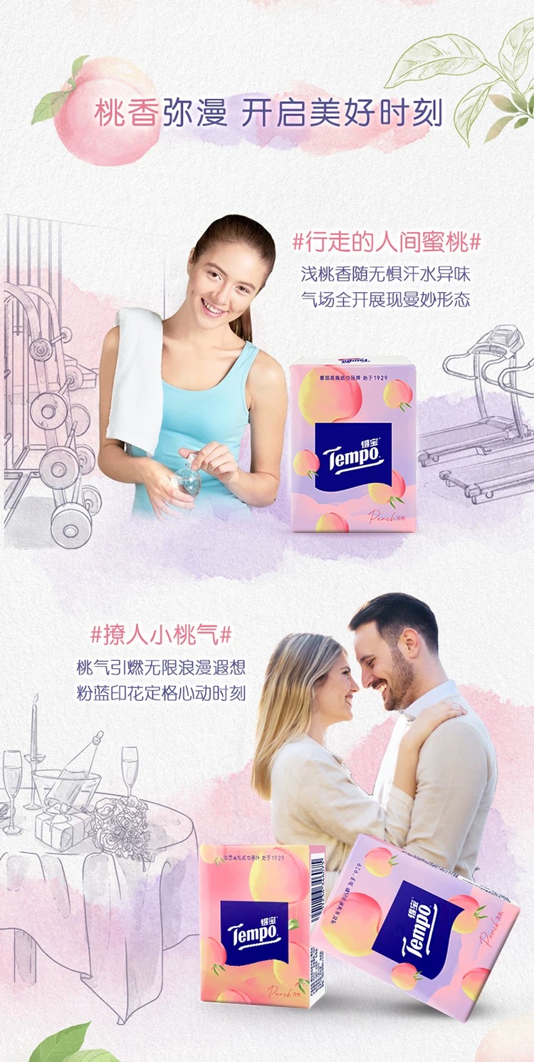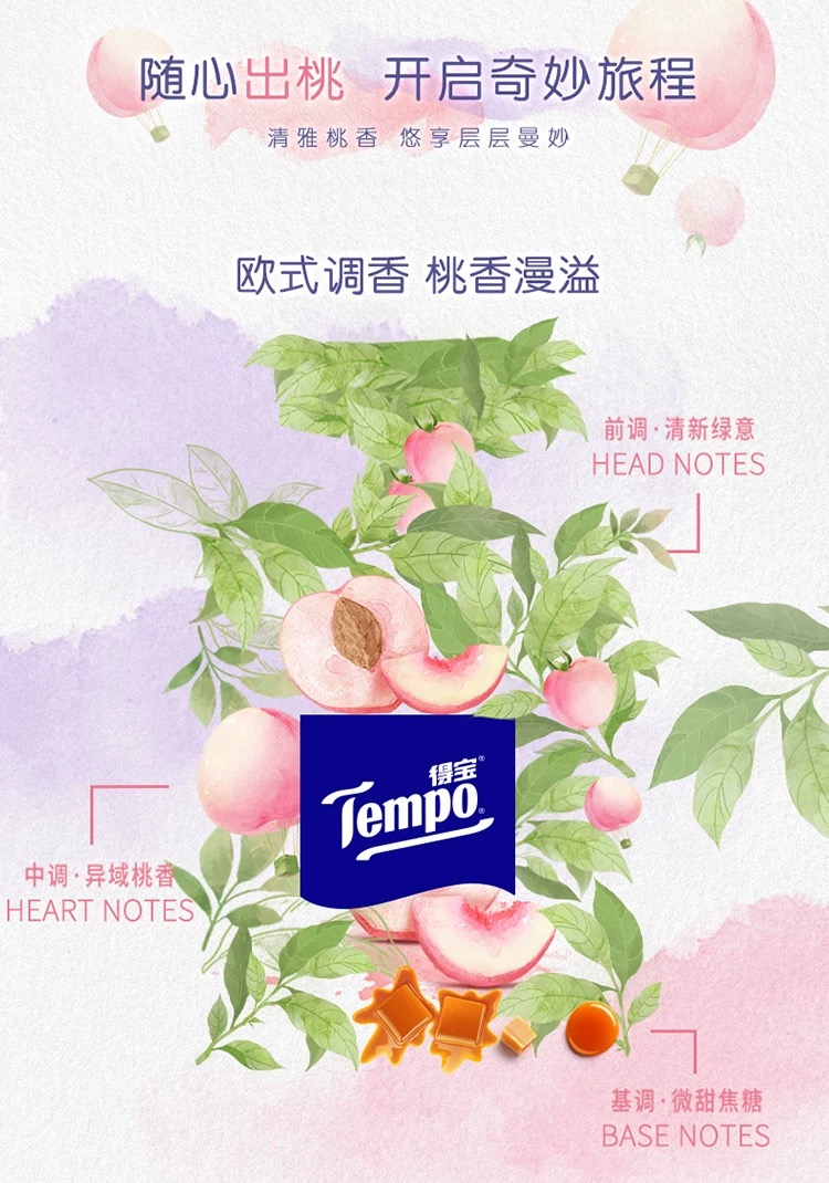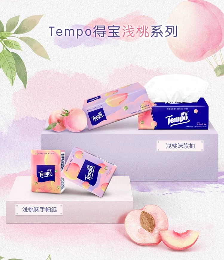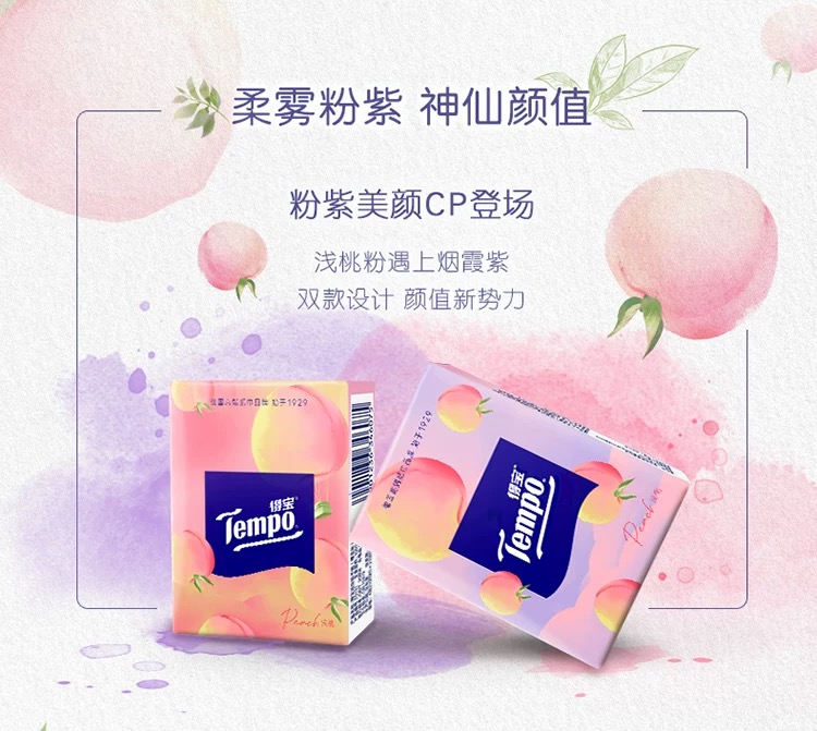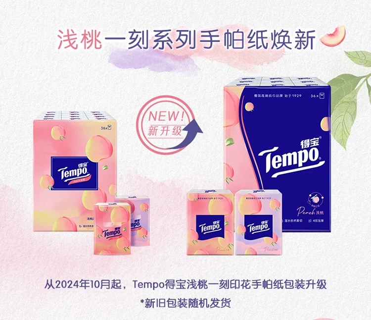 得宝(Tempo) 纸巾甜心桃味手帕纸4层36包 纸巾小包便携装手帕纸(新旧包装随机发货)
