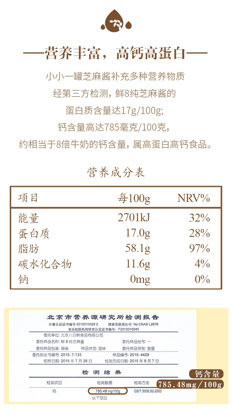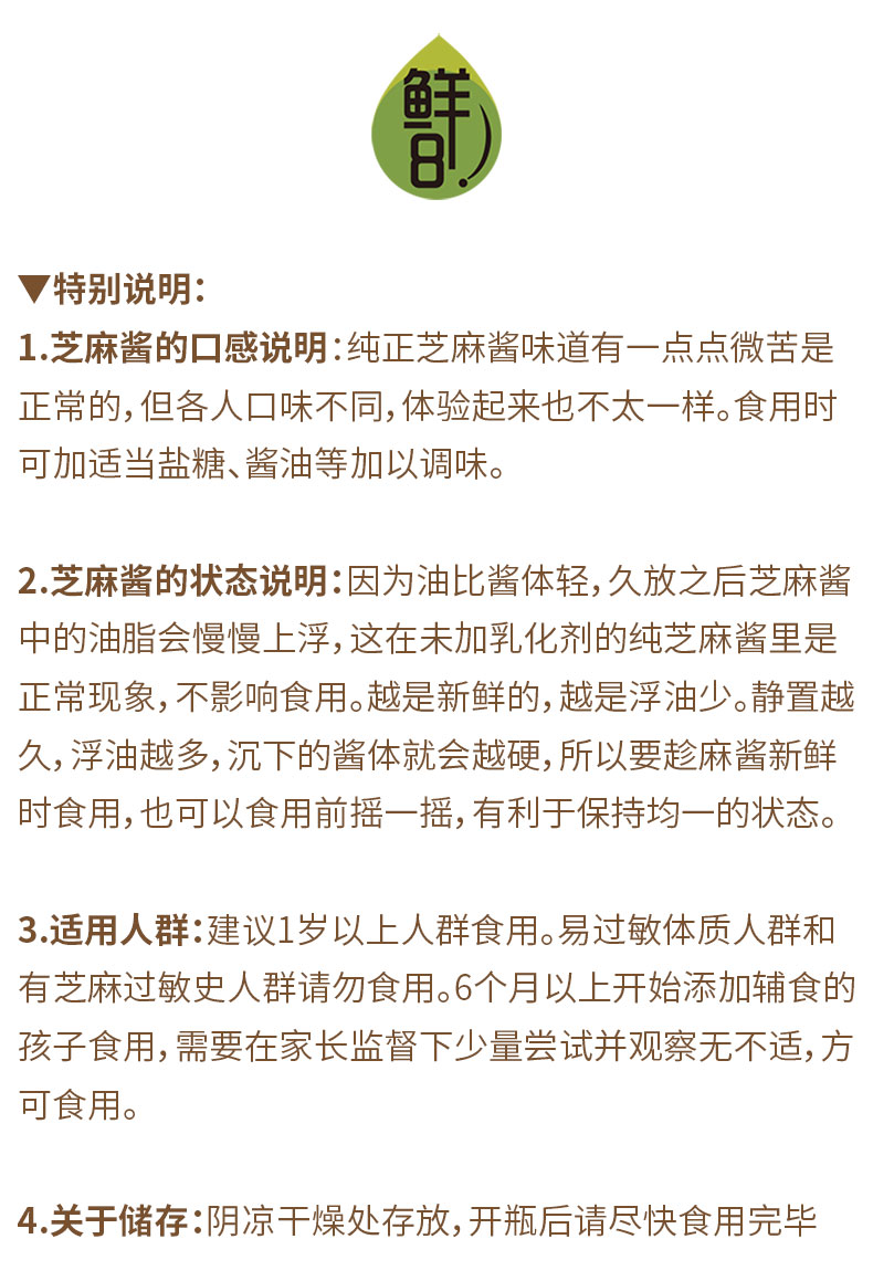 鲜8纯芝麻酱2瓶包邮装