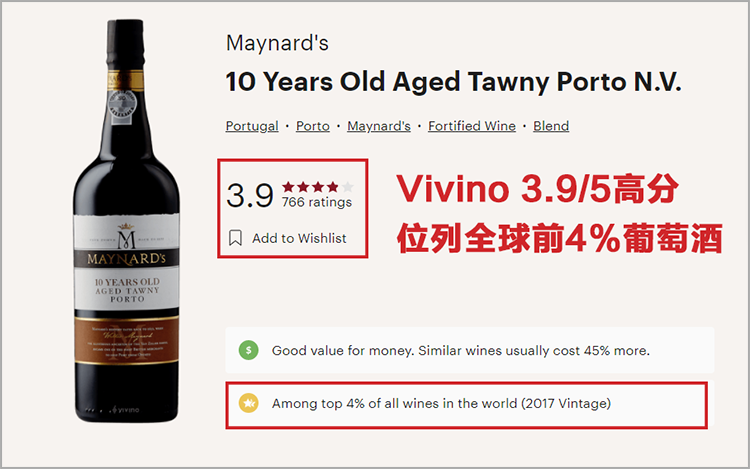 95高分+多金奖陈年波特!卓越性价比口粮!美纳斯10年茶色波特Maynard's 10 Years Old Tawny