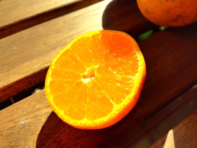 Oscar:桔子皮剥出来肉很厚实、一口咬下去汁水多、味道很鲜甜。