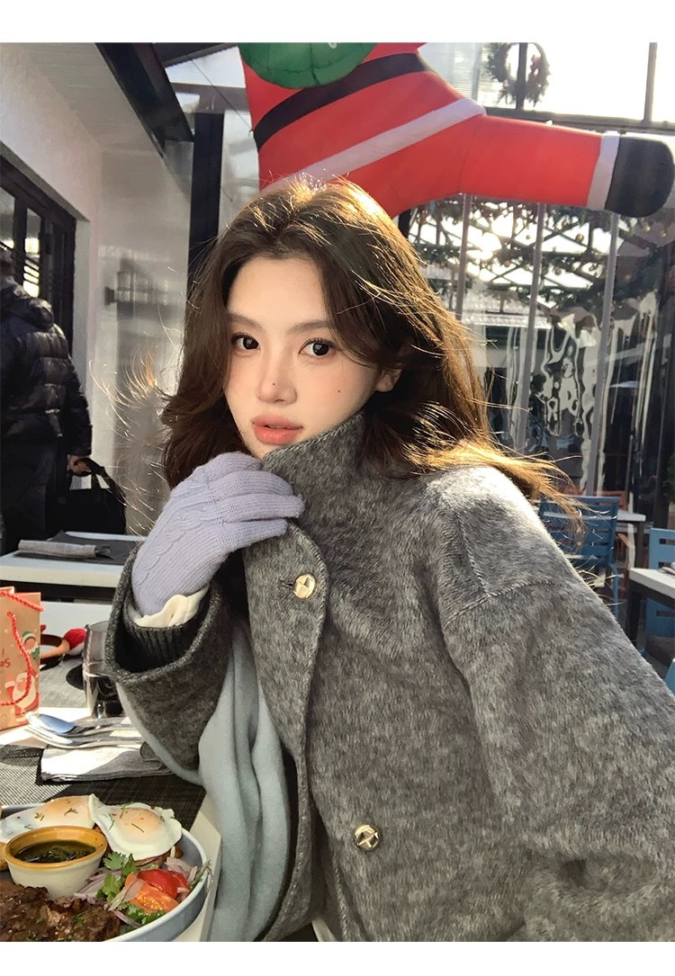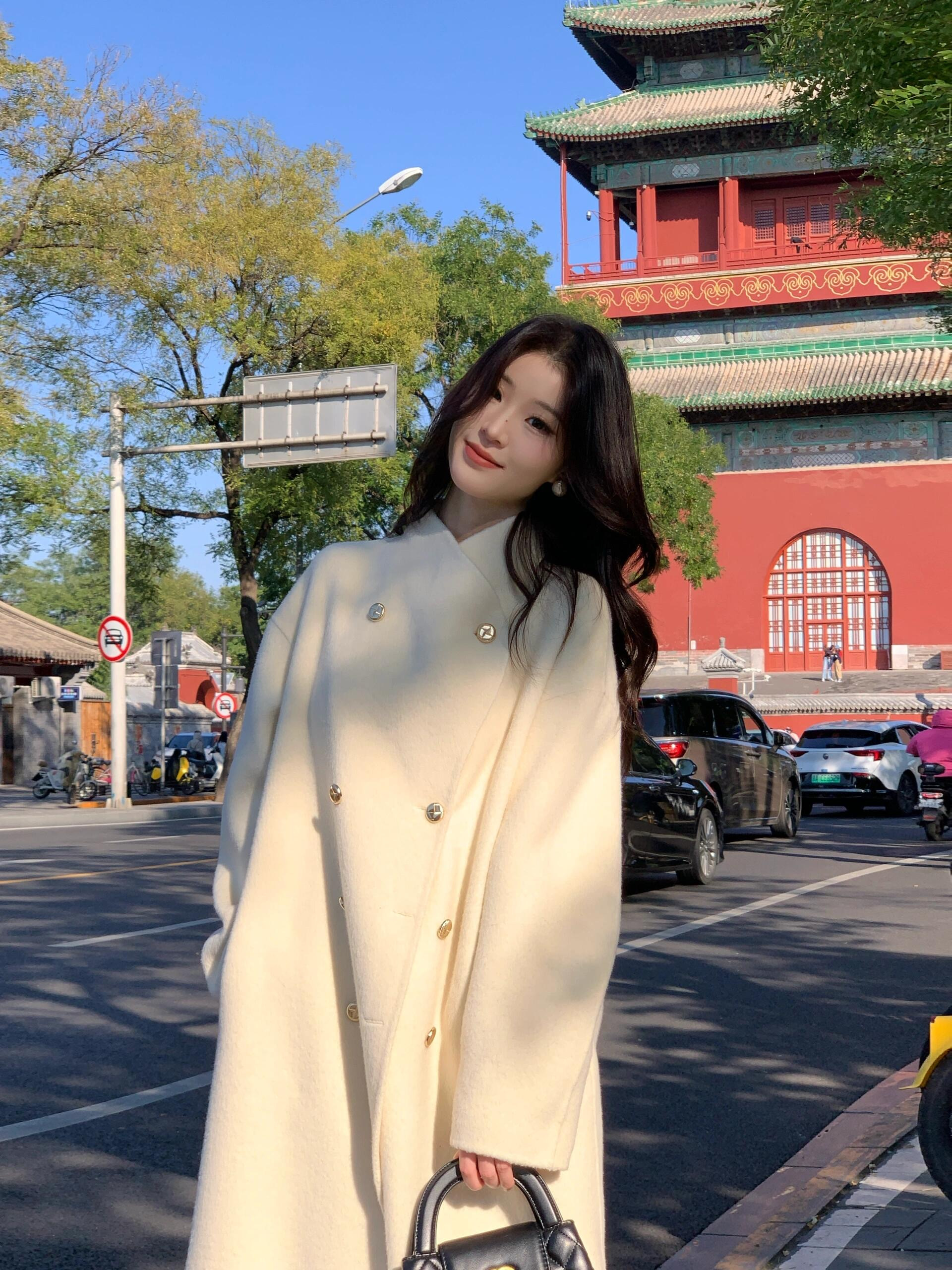 相比普通羊毛大衣更加厚实。