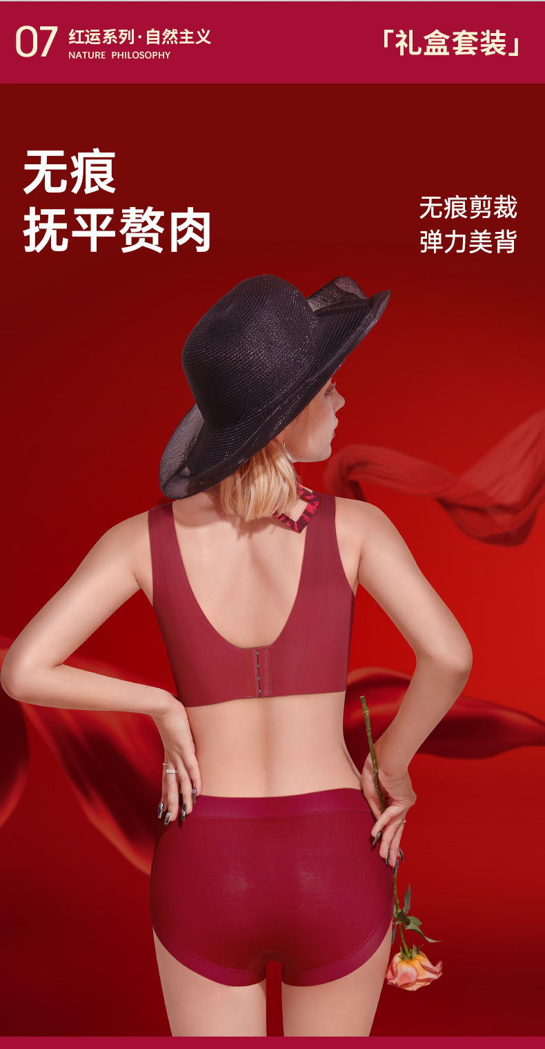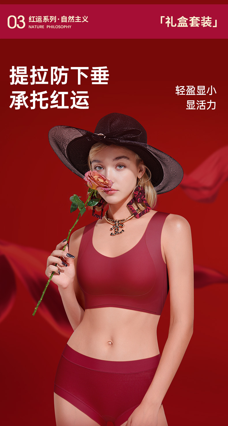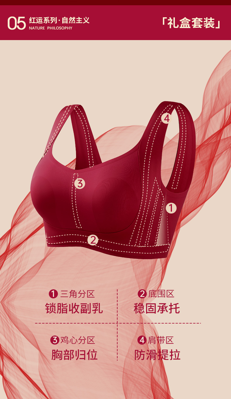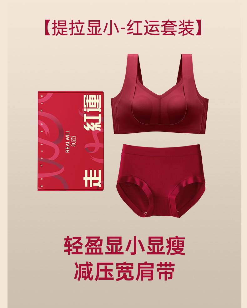 T1-❤直播间同款提拉女王5.0【套装:礼盒+内衣+内裤】润微红色内衣套装提拉显小显瘦无痕文胸套装本命年结婚新娘 提拉显小【1分钱换购红袜子不需要加购物车,提交付款界面会显示】