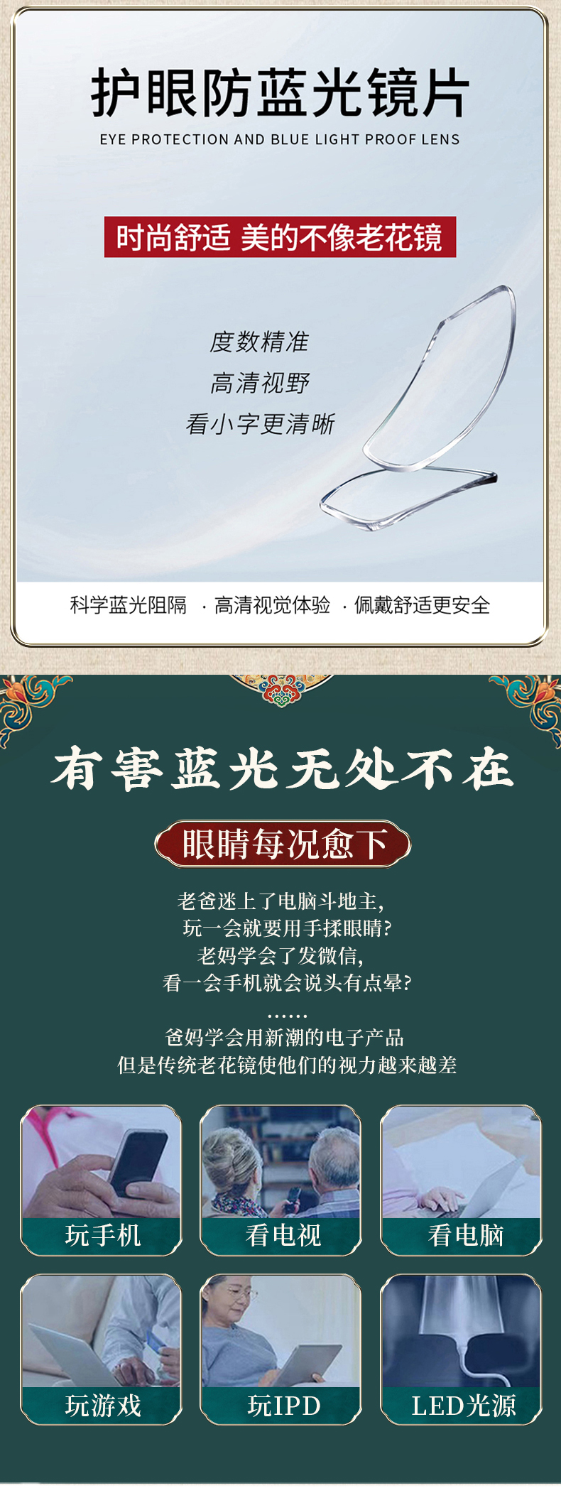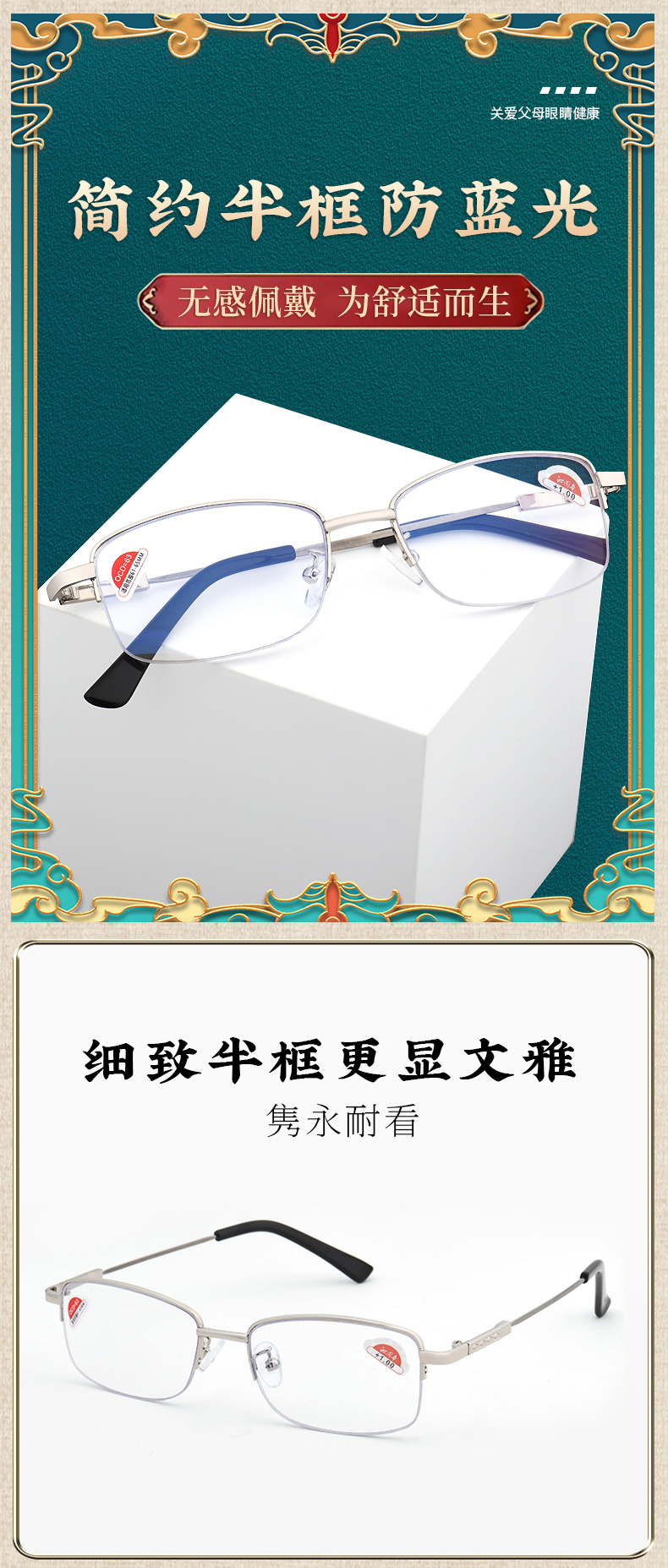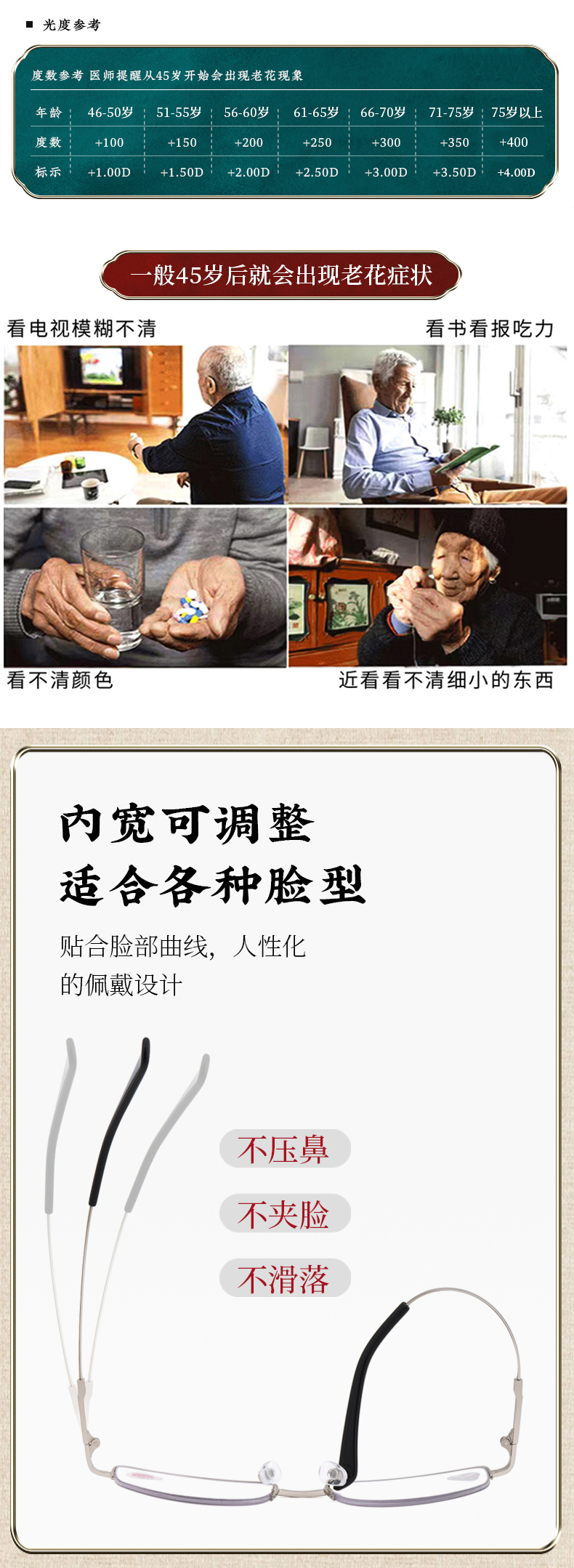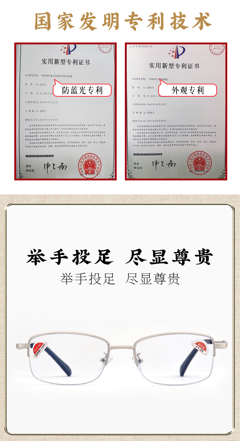 沁园春大健康老视镜 记忆钛防蓝光老花镜