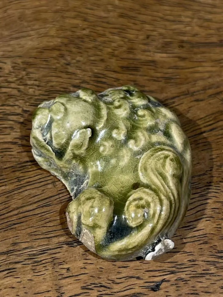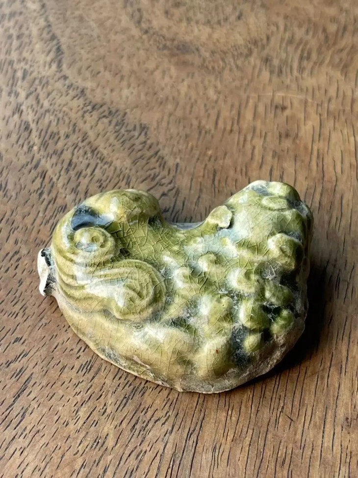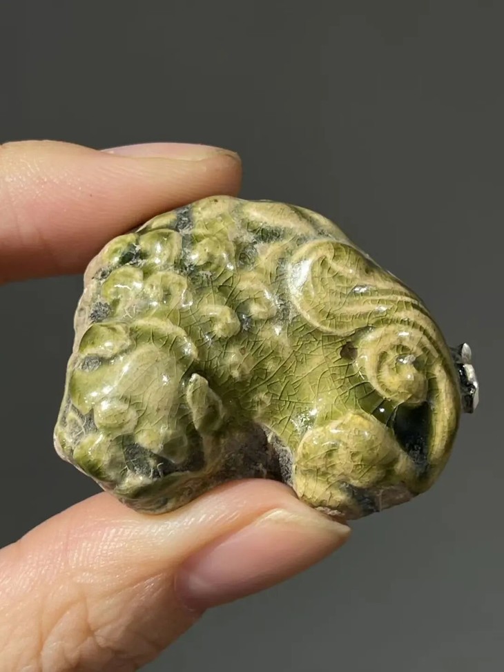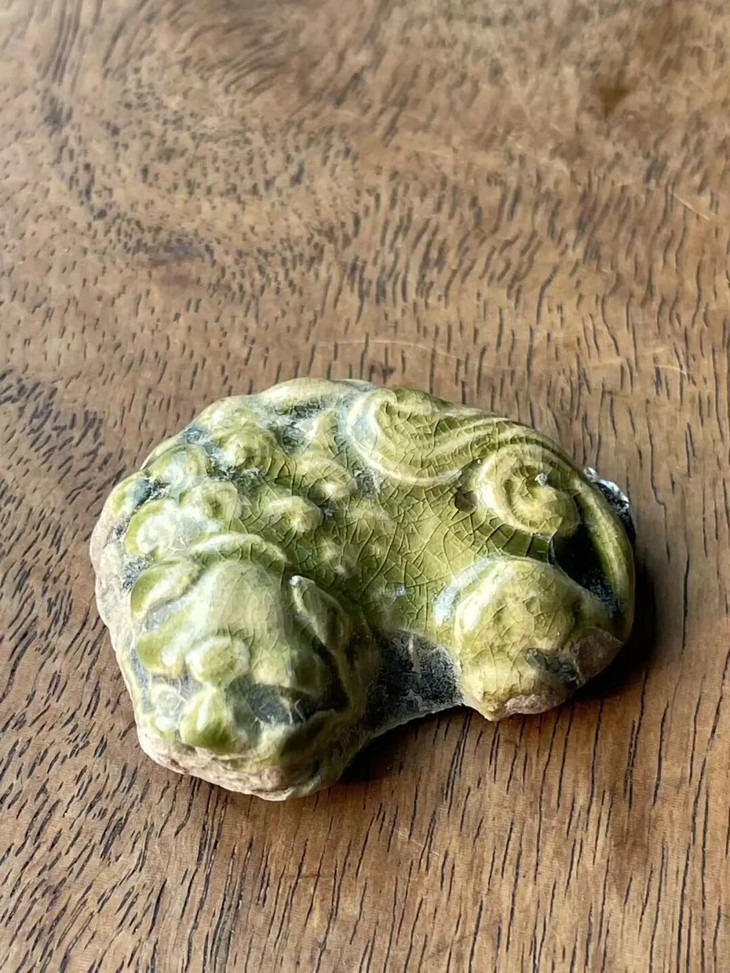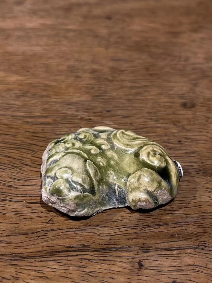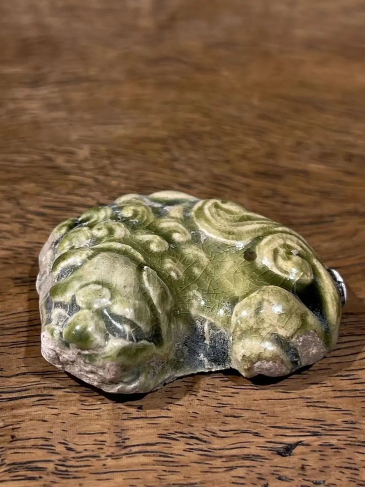 这是一件塑型典雅,烧造于耀州窑的青瓷釉袖珍瑞狮,釉色半通透,尺寸虽小塑型生动流畅的文人书房案头小摆件,高温青瓷釉塑造生动活泼的小瑞狮,造型仿生自然、细节精緻,覆盖橄榄绿青瓷釉,整体生动精美典雅,尺寸虽小却灵动可爱。