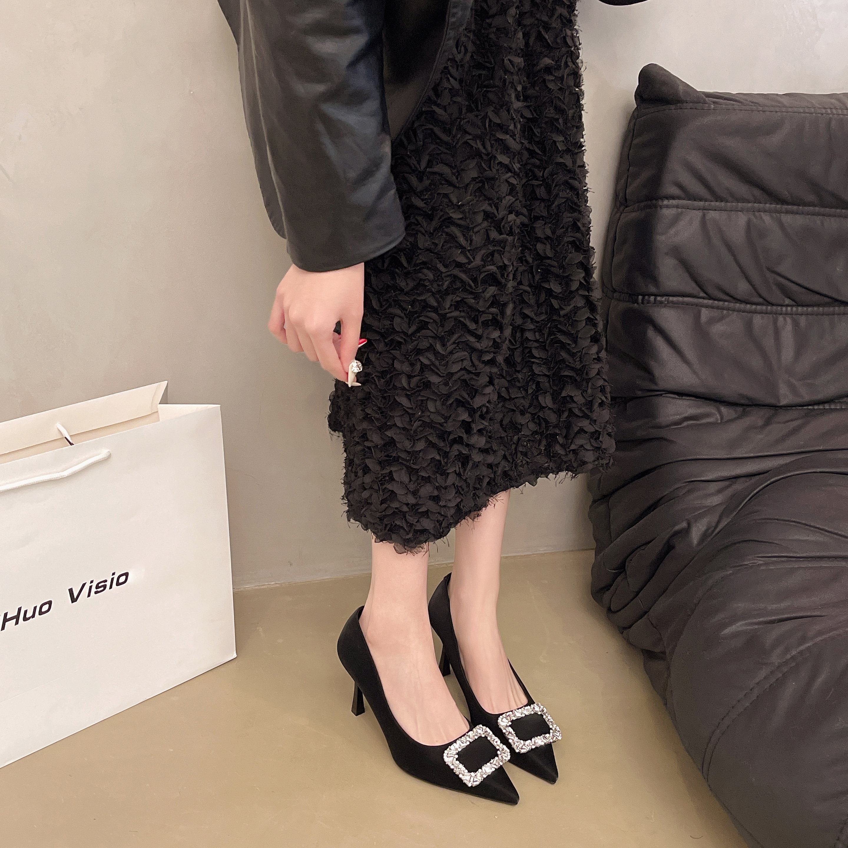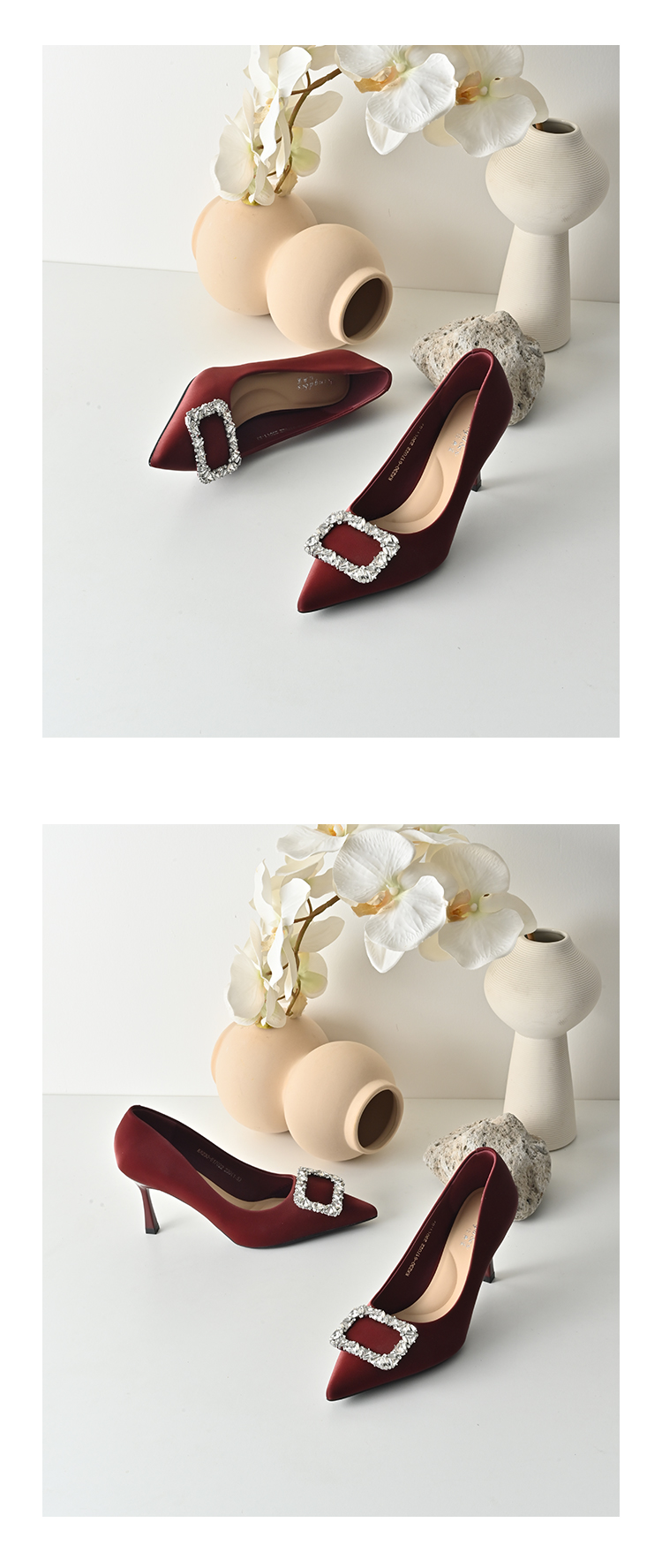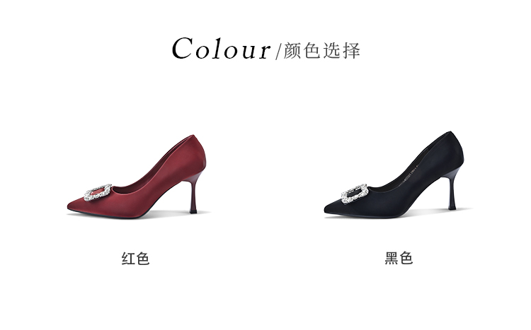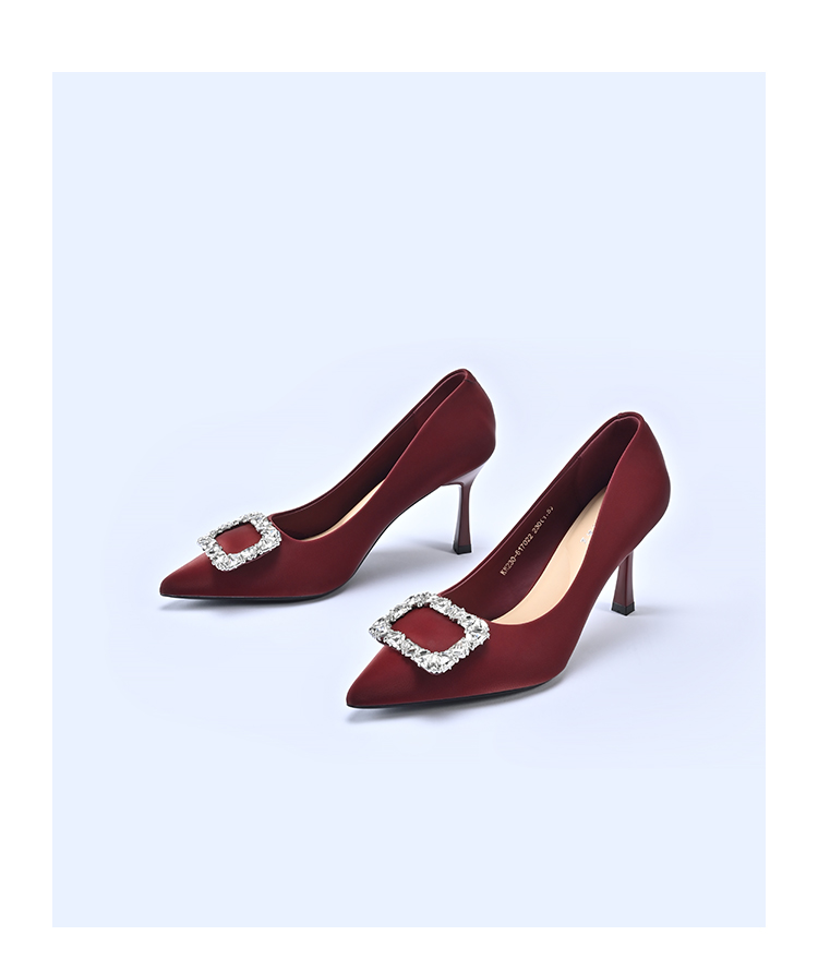 经典鲨2026春专柜款红色优雅尖头水钻6cm新中式婚鞋高跟鞋女KW230-617021