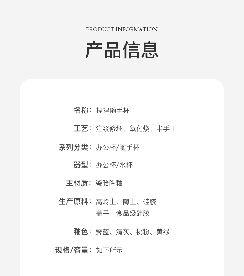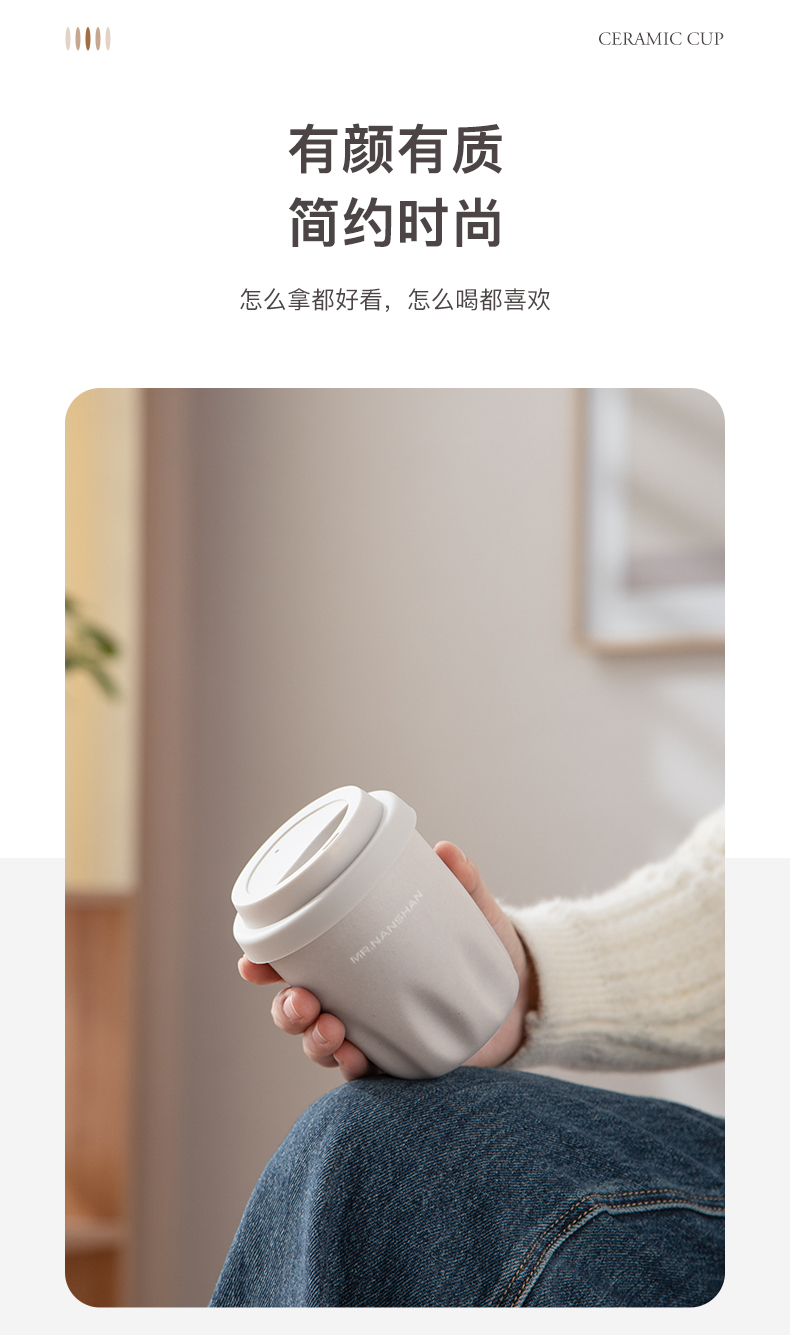捏捏随手杯女士喝水杯子咖啡陶瓷随行杯