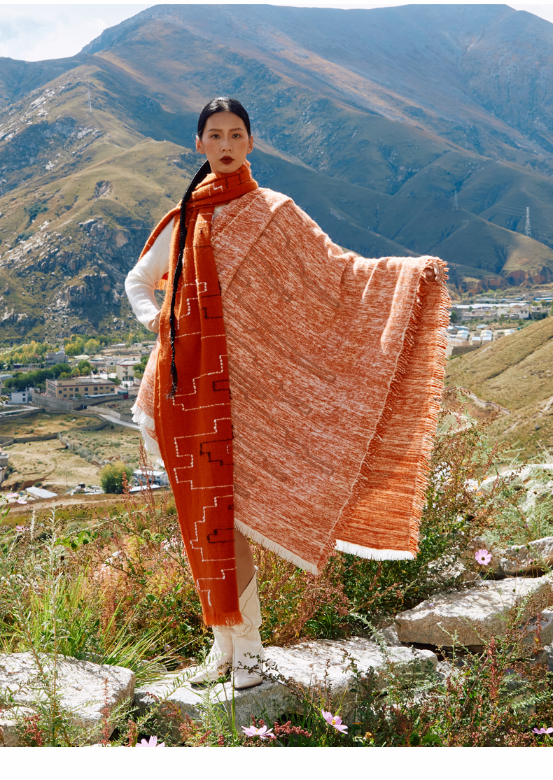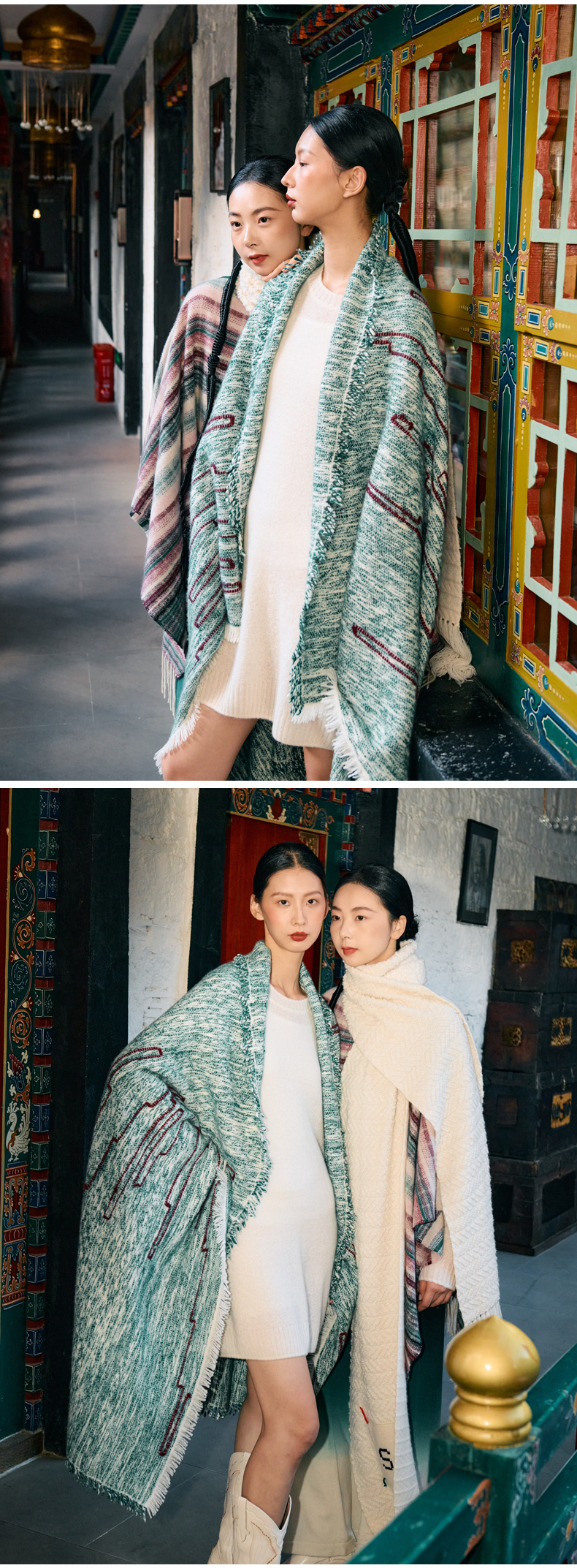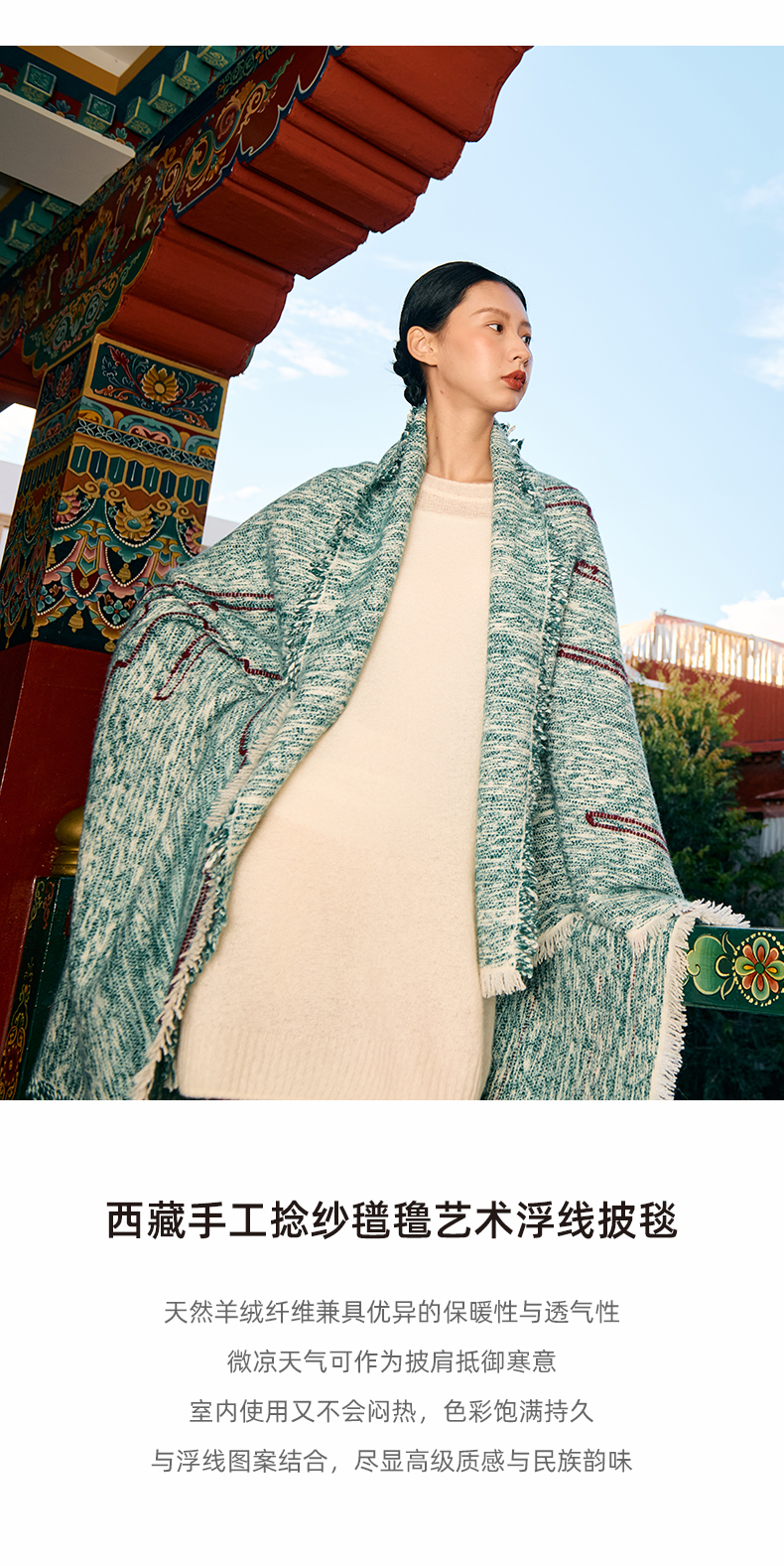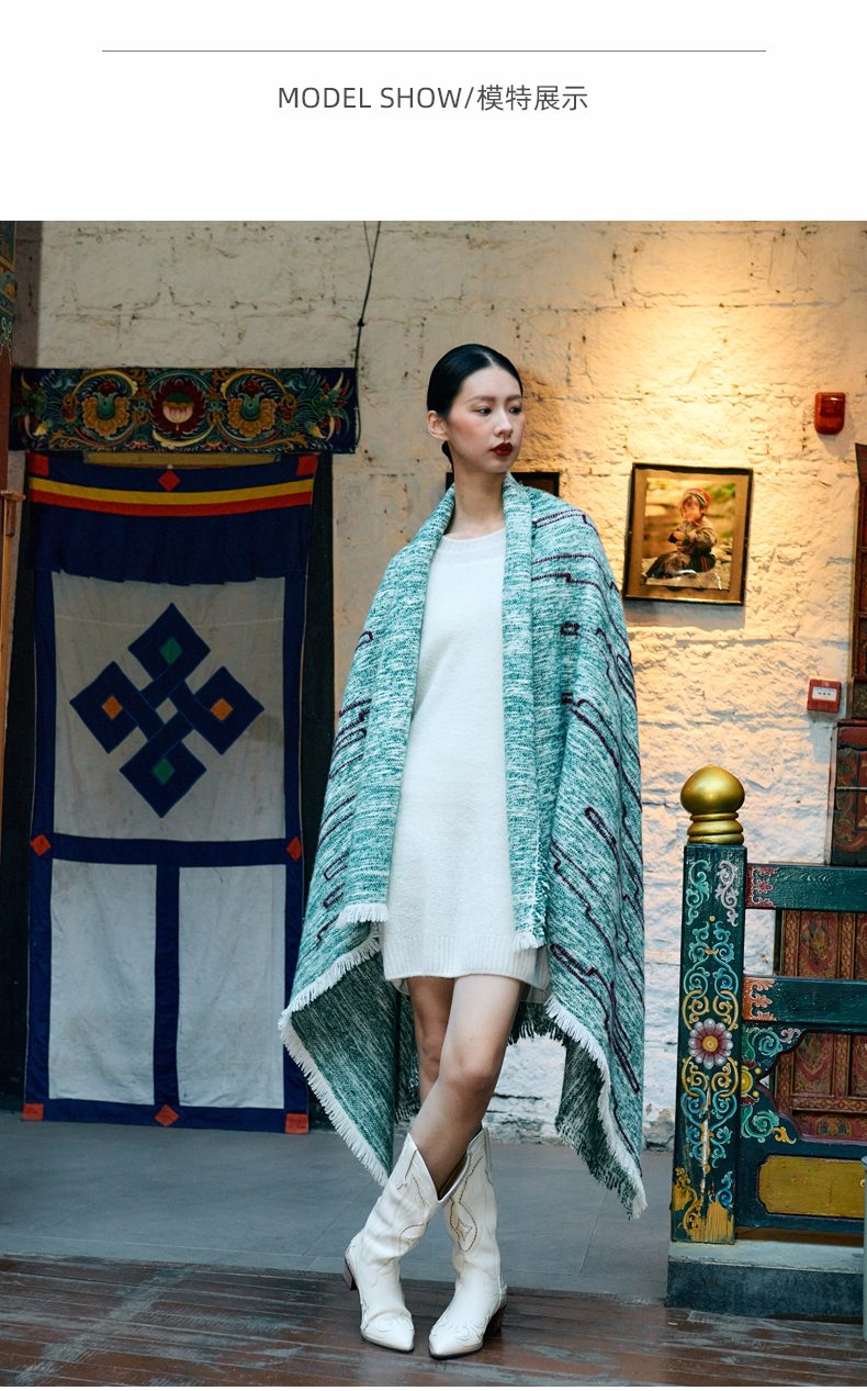 西藏手工捻纱氆氇艺术浮线披毯 SJF97P799N