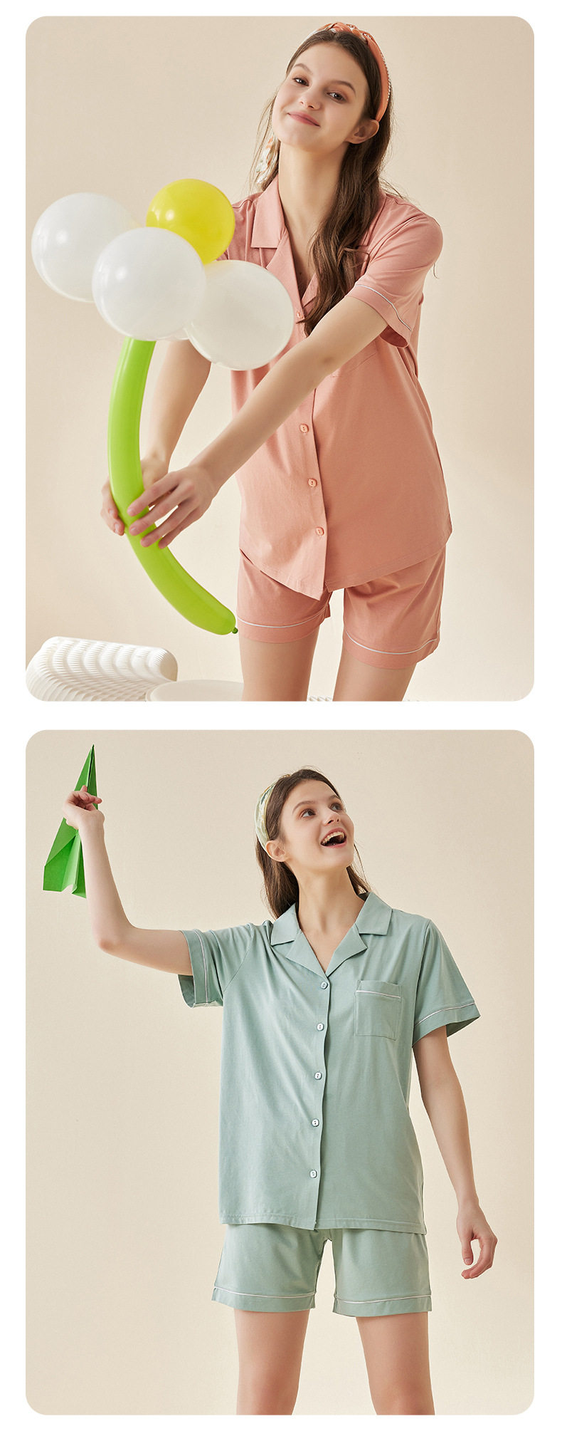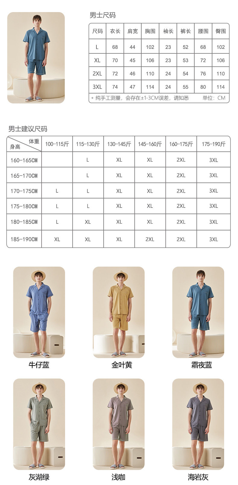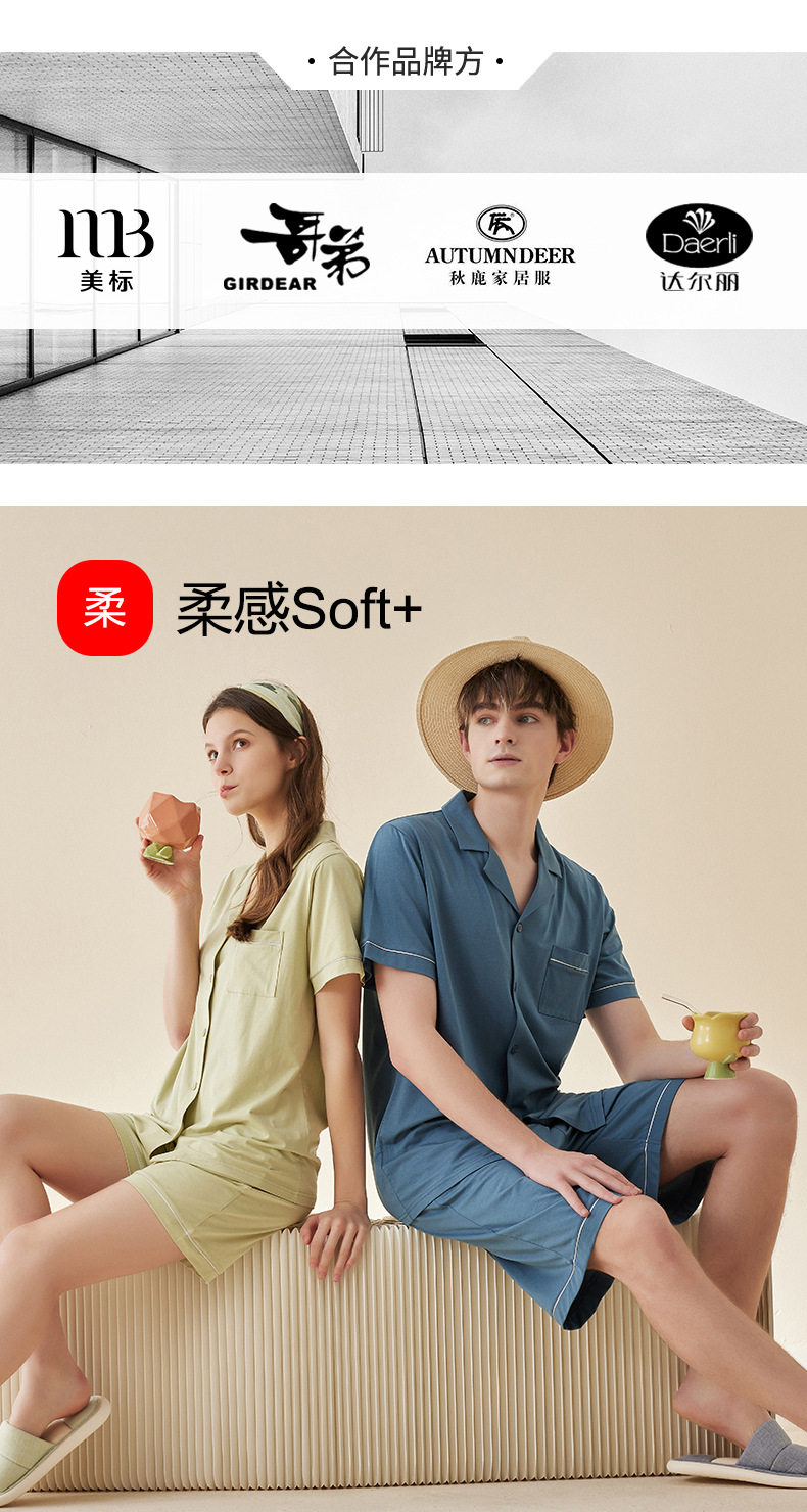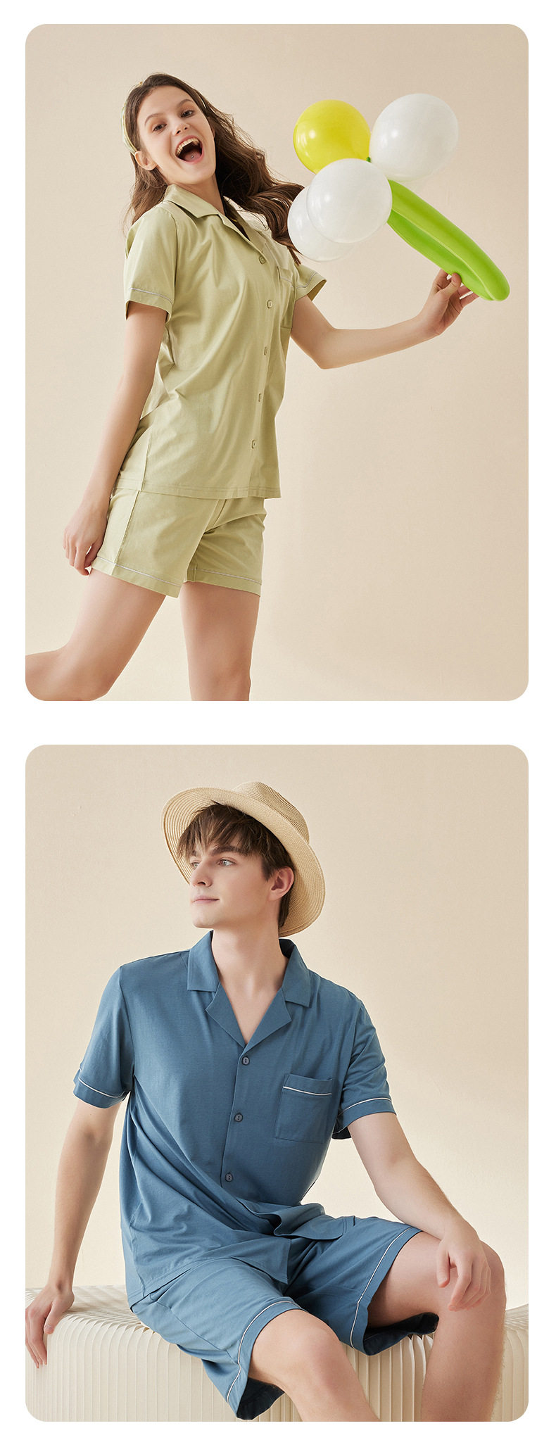 兰精莫代尔棉短袖短裤情侣睡衣女夏 纯色简约男女士家居服