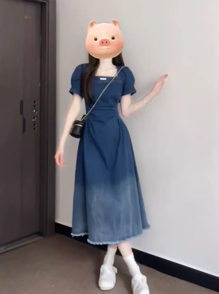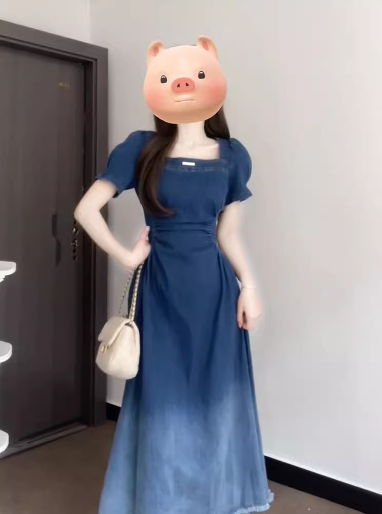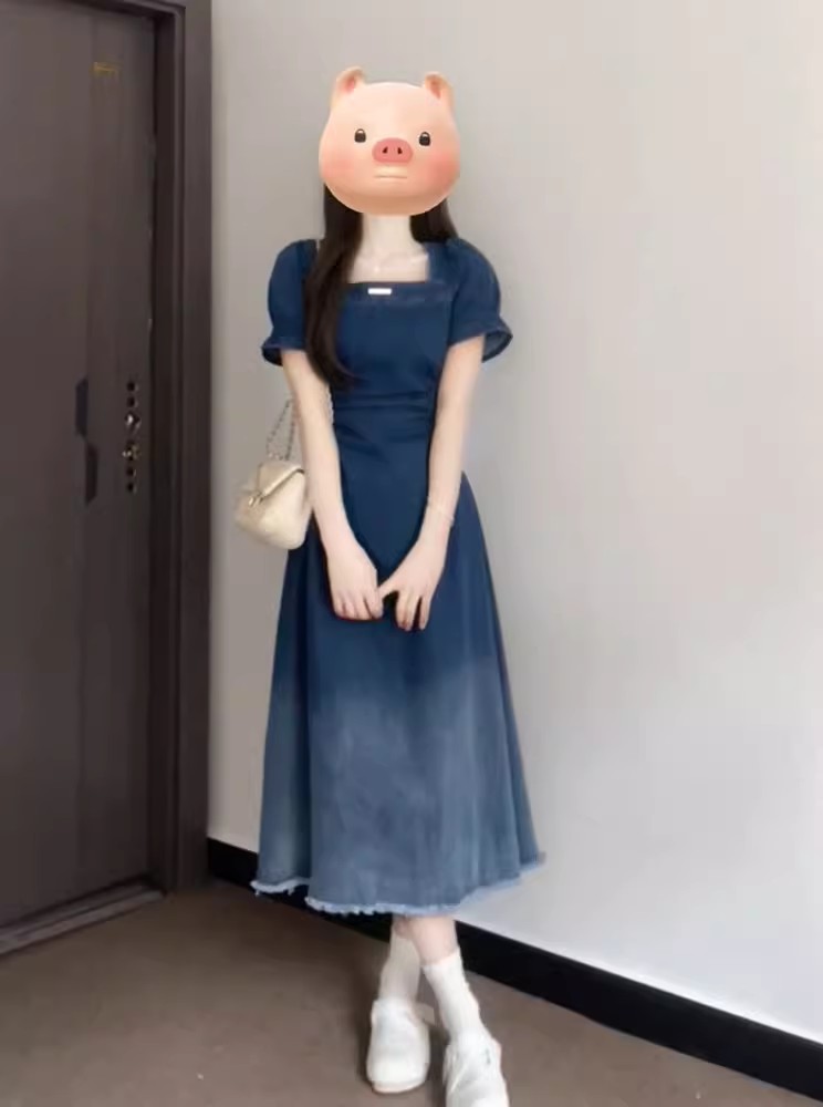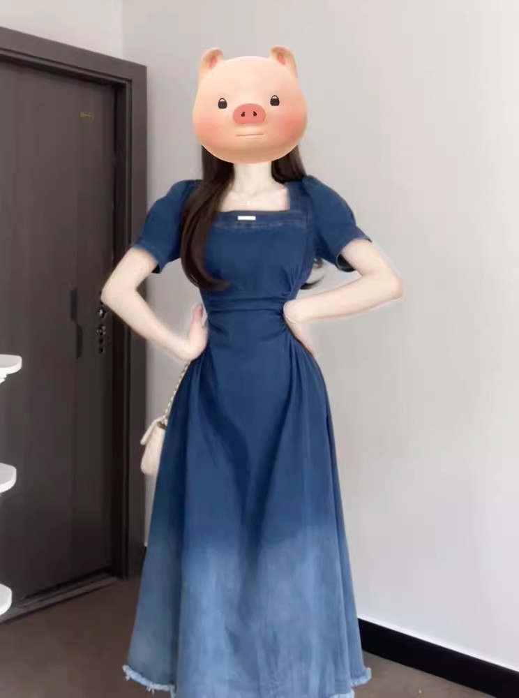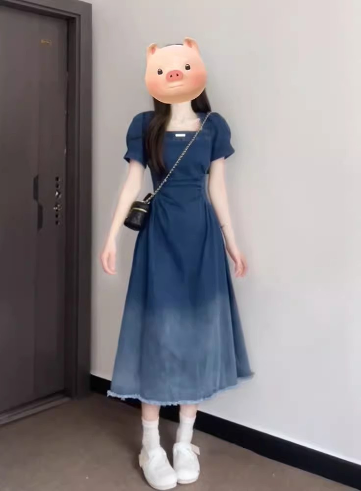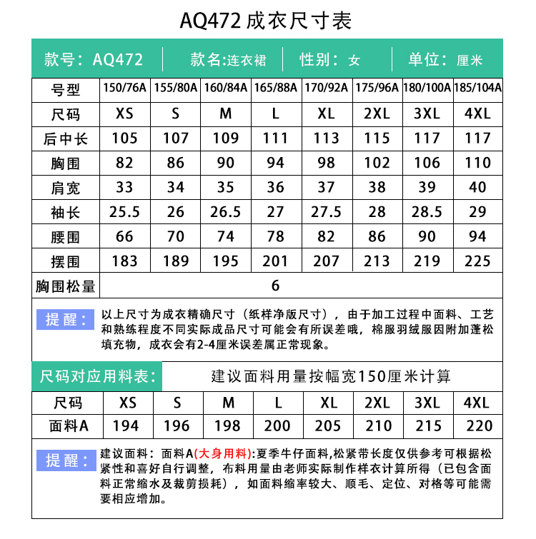 裁缝学苑AQ472法式收腰显瘦复古牛仔连衣裙纸样女装短袖裙子样板