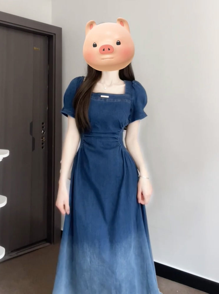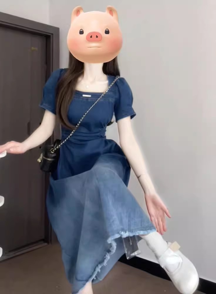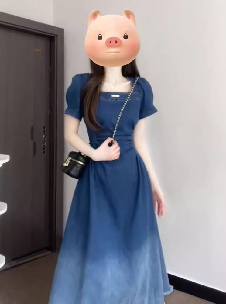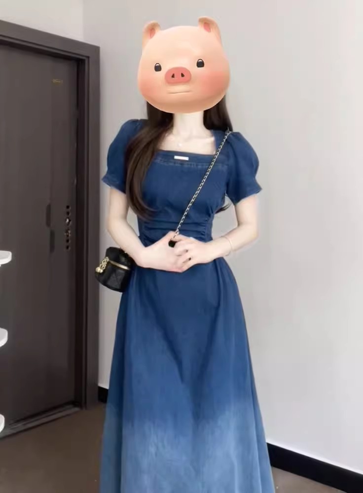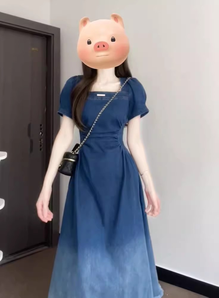 裁缝学苑AQ472法式收腰显瘦复古牛仔连衣裙纸样女装短袖裙子样板