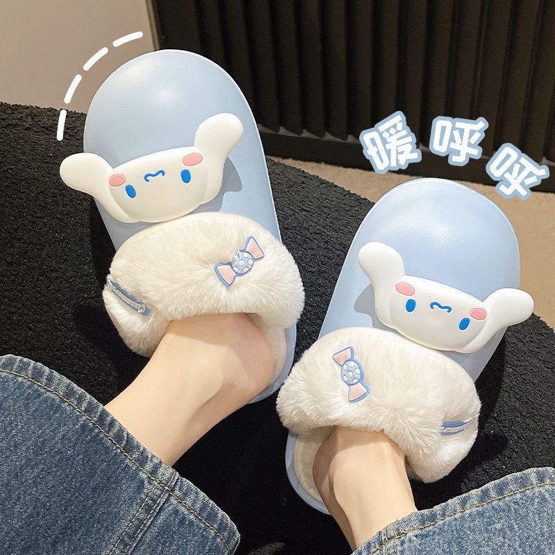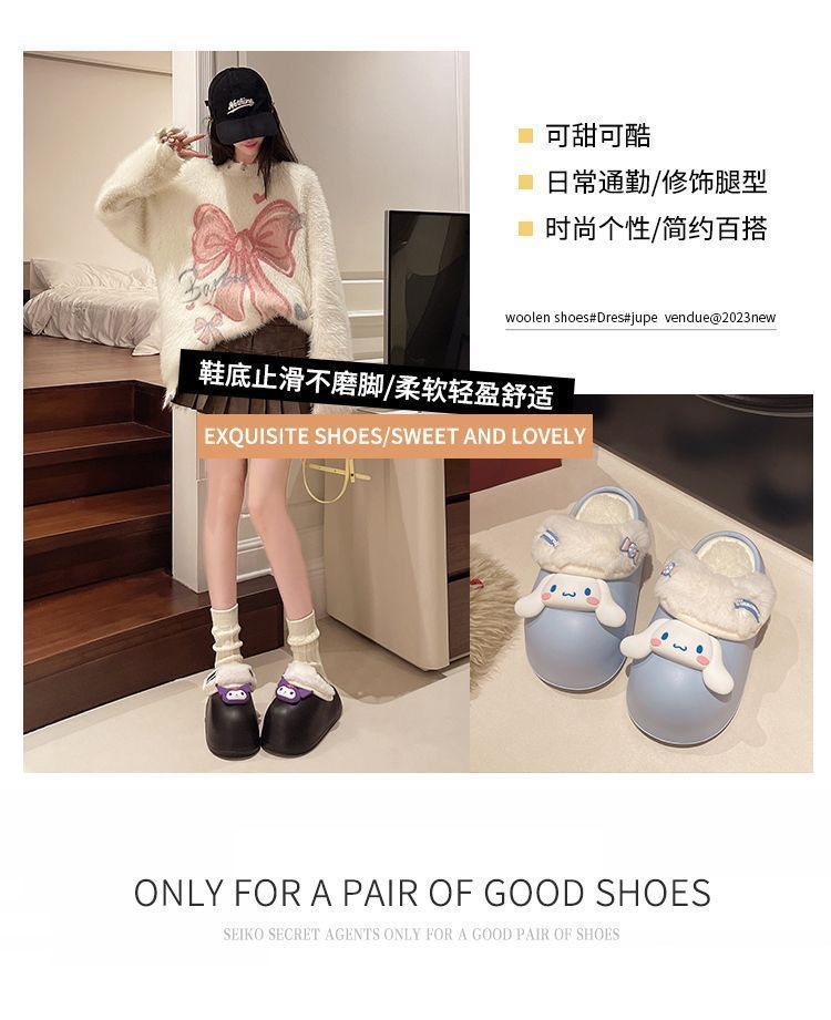 <有书独家>【卡通可爱❗️可拆卸棉拖鞋】鞋底止滑不磨脚/柔软轻盈舒适,可拆卸加绒保暖棉防滑设计,简约秋冬季家居家用,保暖室内外穿厚底棉拖鞋,厚底女士包跟毛毛保暖棉鞋L