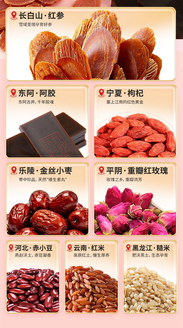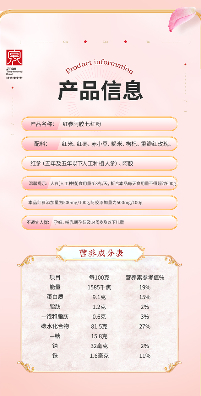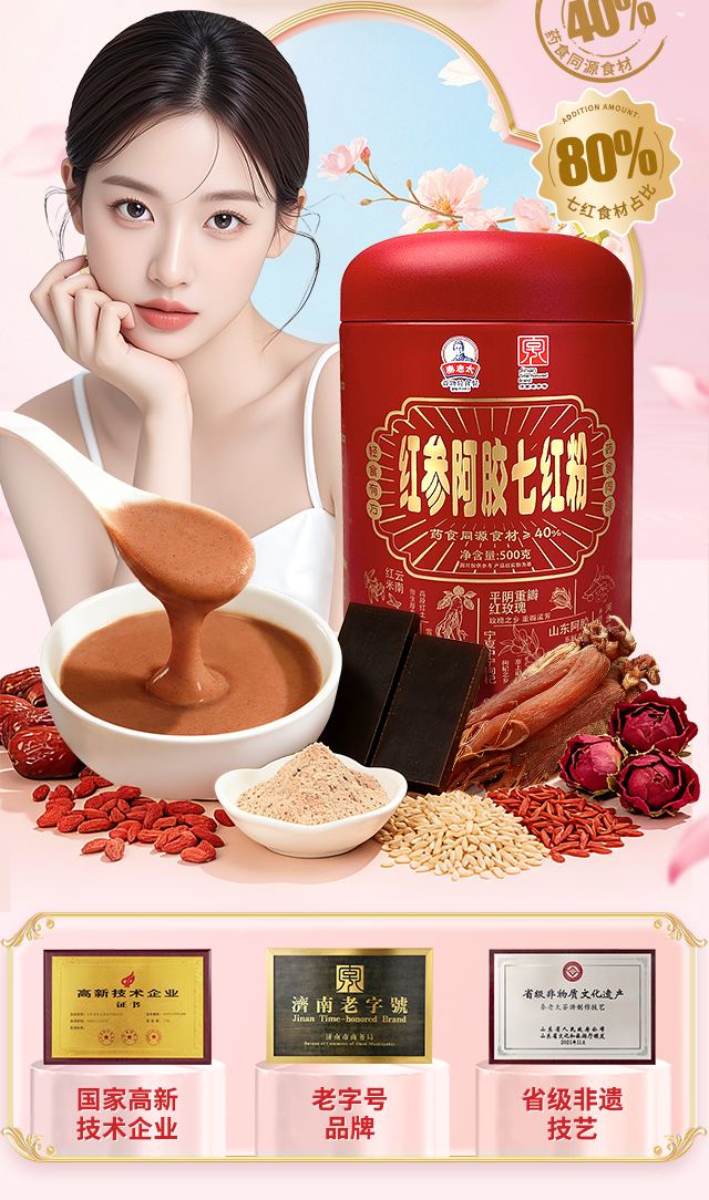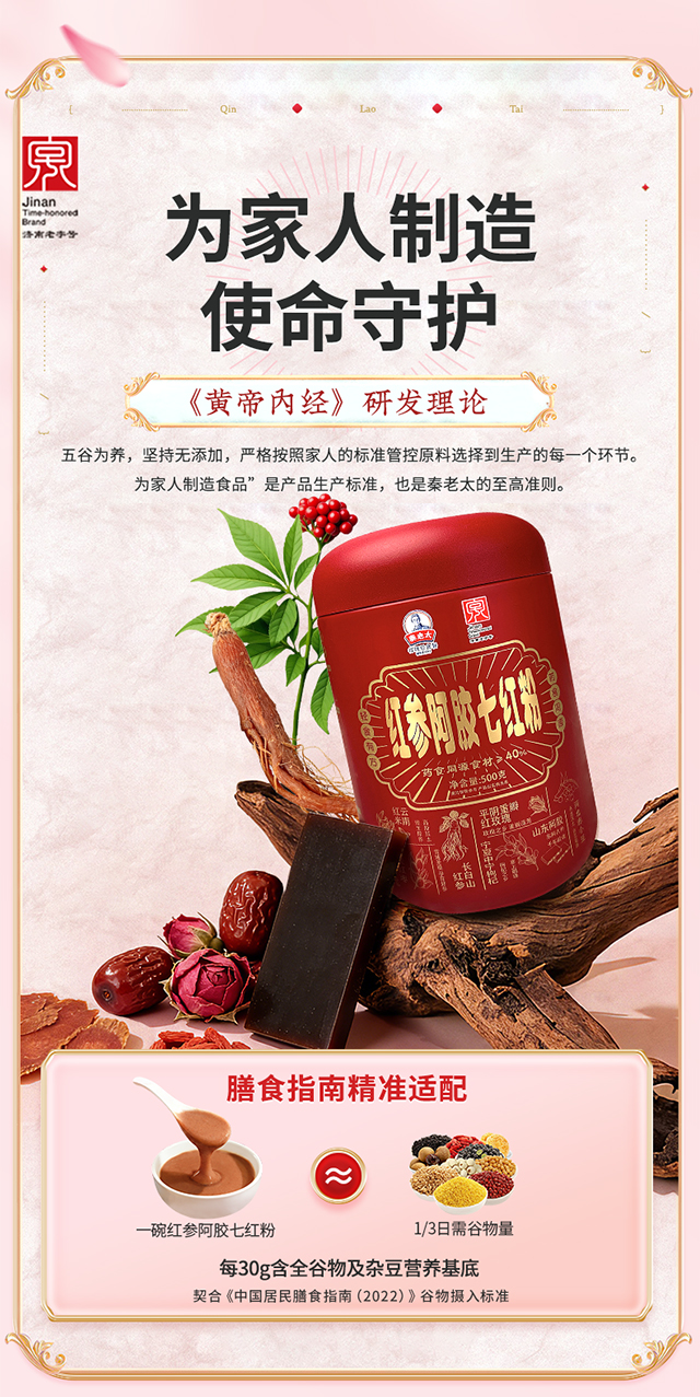 [新品热销]秦老太红参阿胶七红粉500g/罐