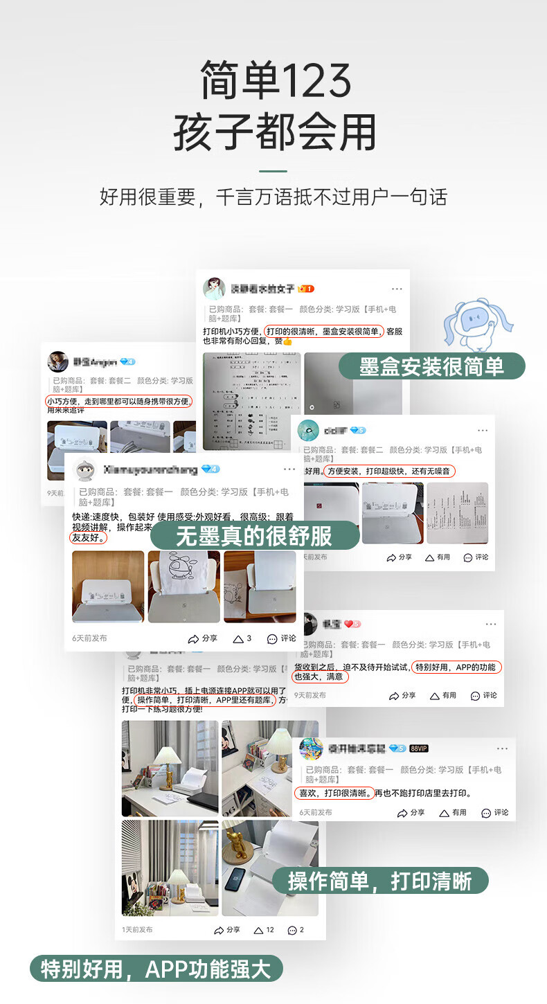 汉印 A4家用桌面打印机 办公学生无线WIFI打印 U200 送200张耗材纸