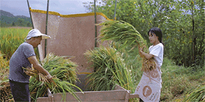 收割完再继续体验一把打谷子的乐趣!