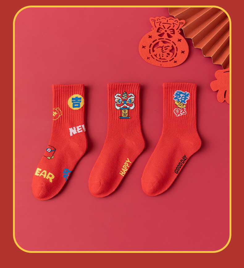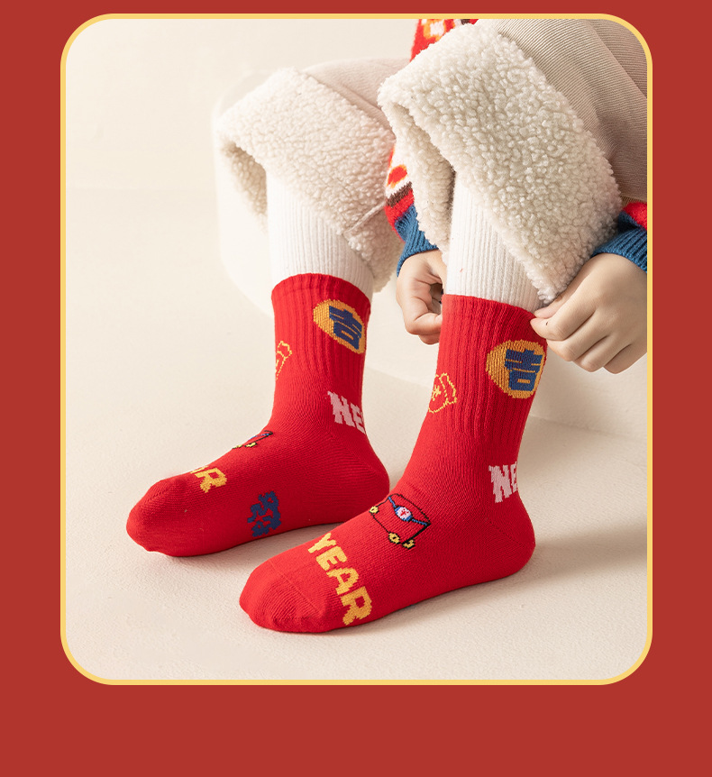 【新年红色发财袜❗️好运连连】抗起球,舒适透气亲肤柔软,不掉色大红新年儿童红袜子可爱发财新款儿童中筒袜蛇年袜子秋冬儿童棉袜