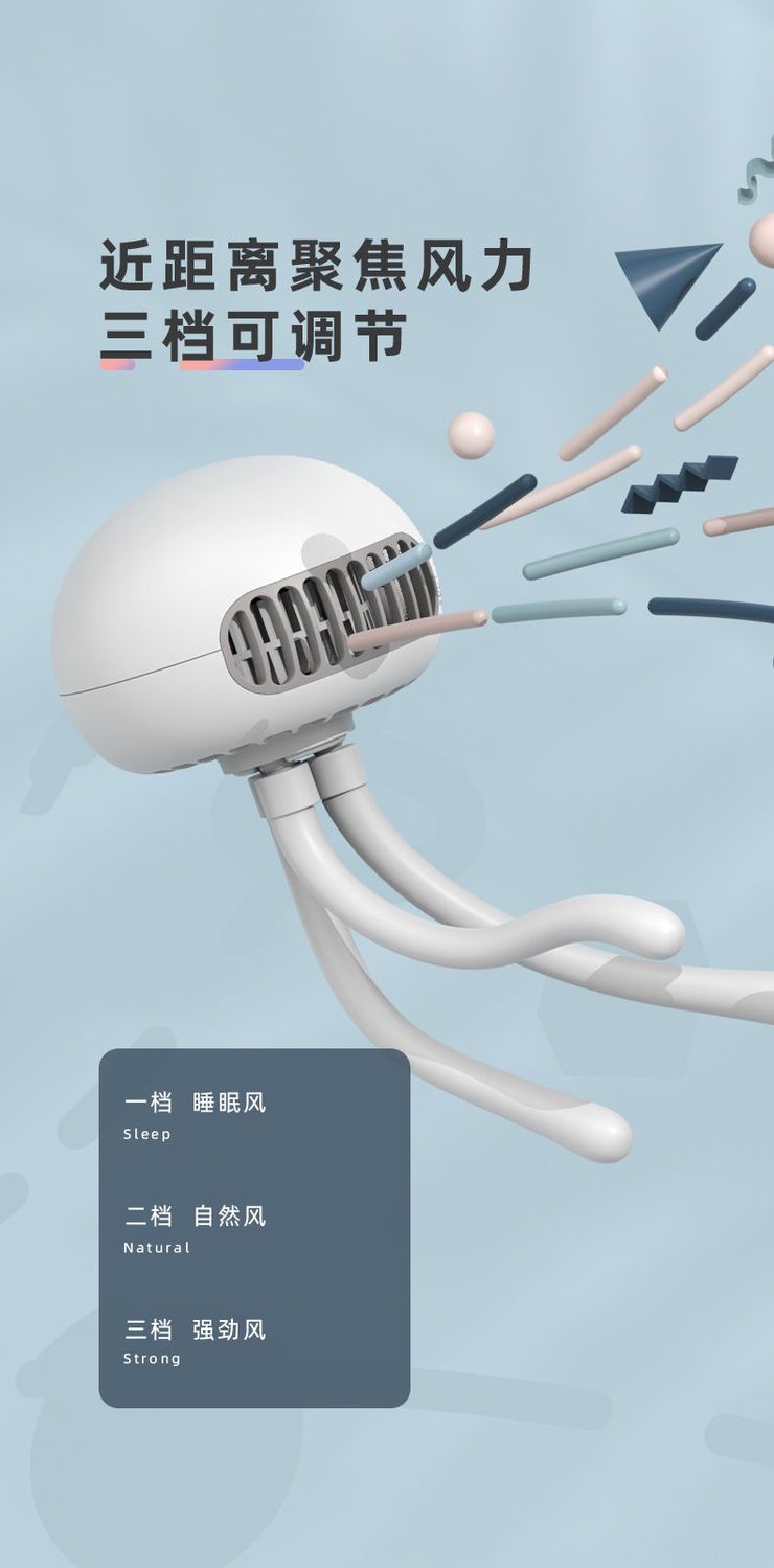 八爪鱼小风扇学生便携式静音推车吹夹扇