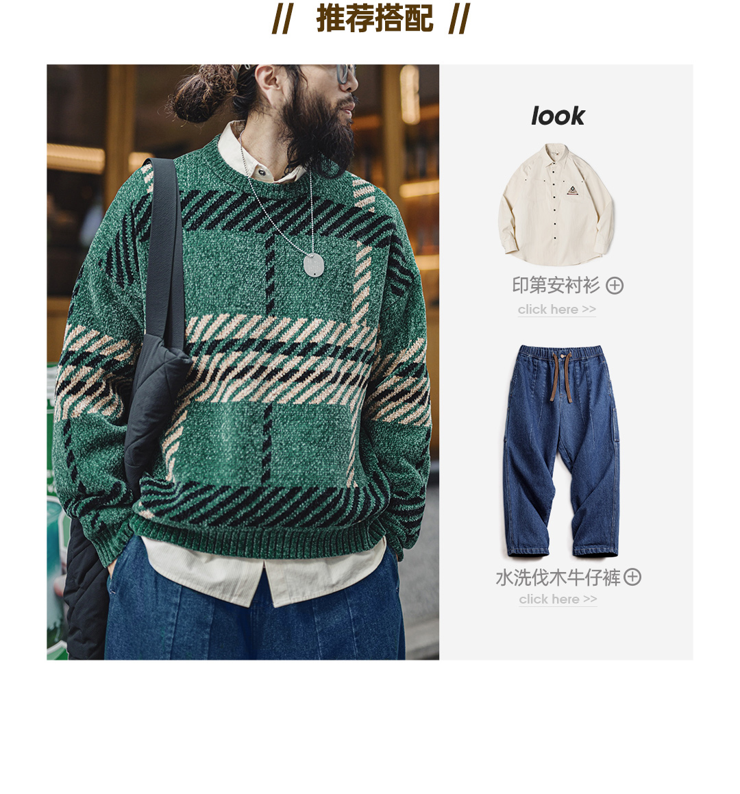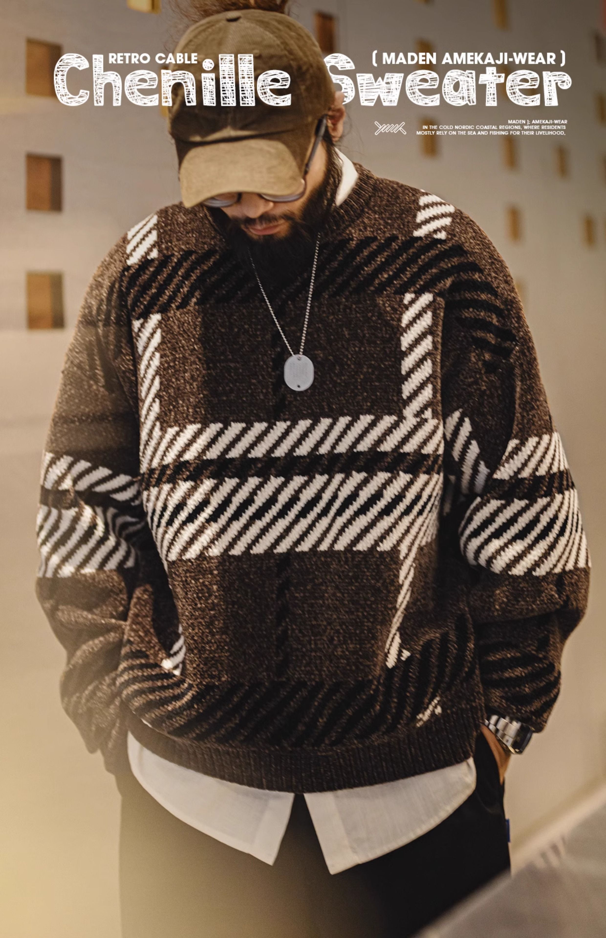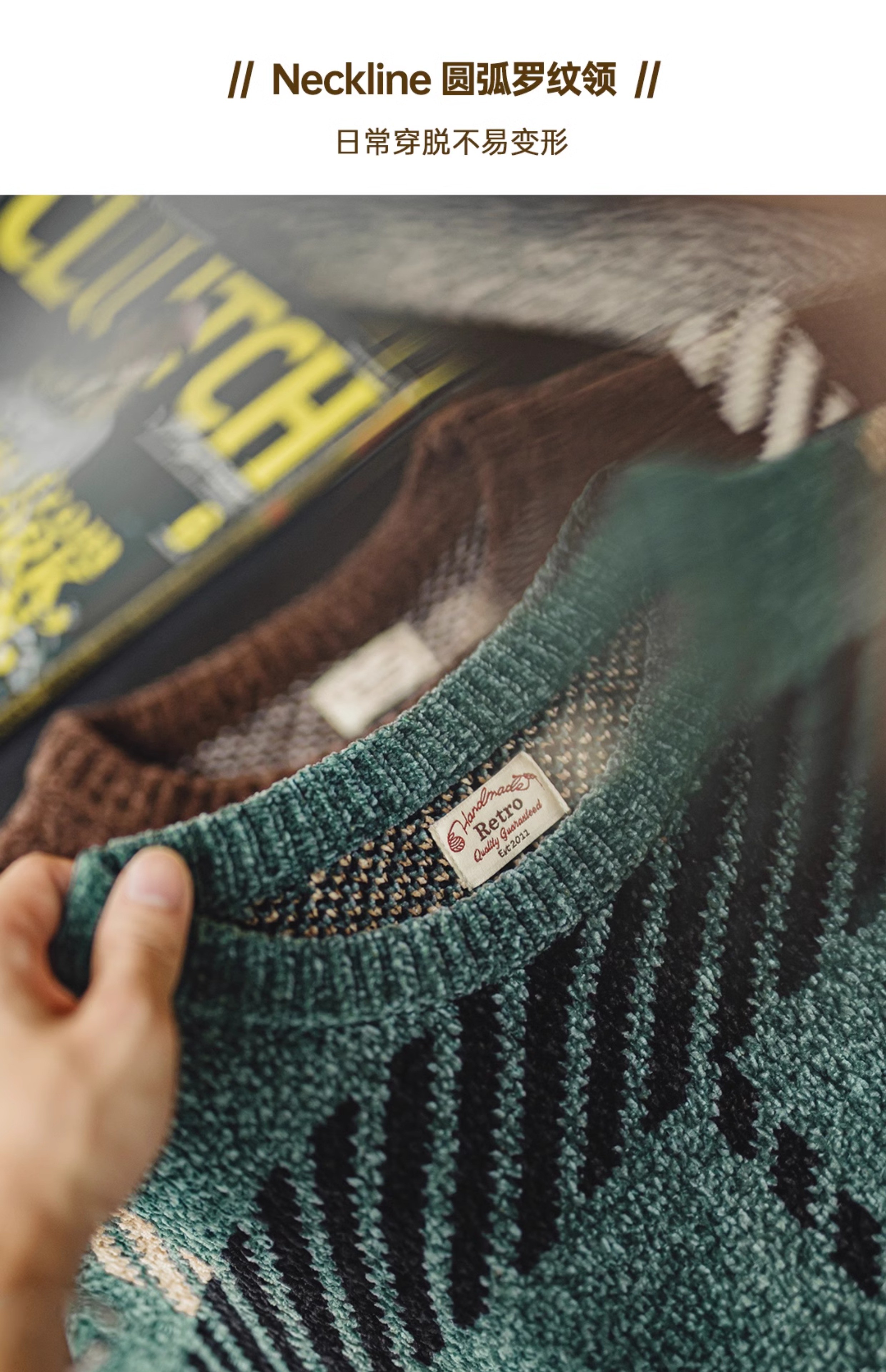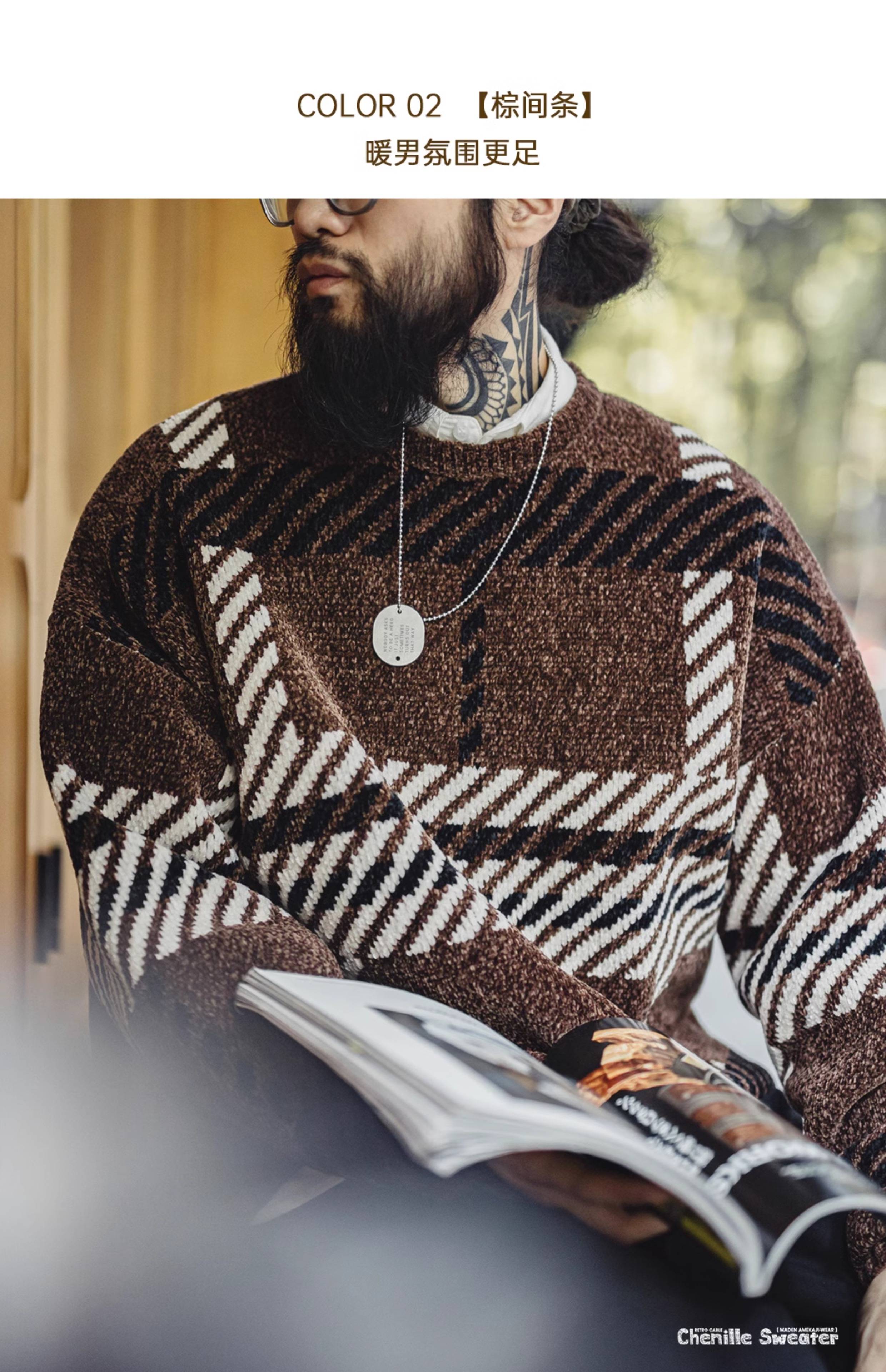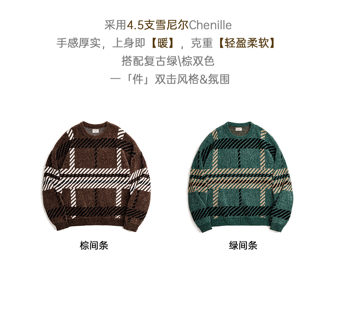 工装优选美式复古雪尼尔圣诞情侣毛衣加厚保暖打底绒针织衫男秋冬