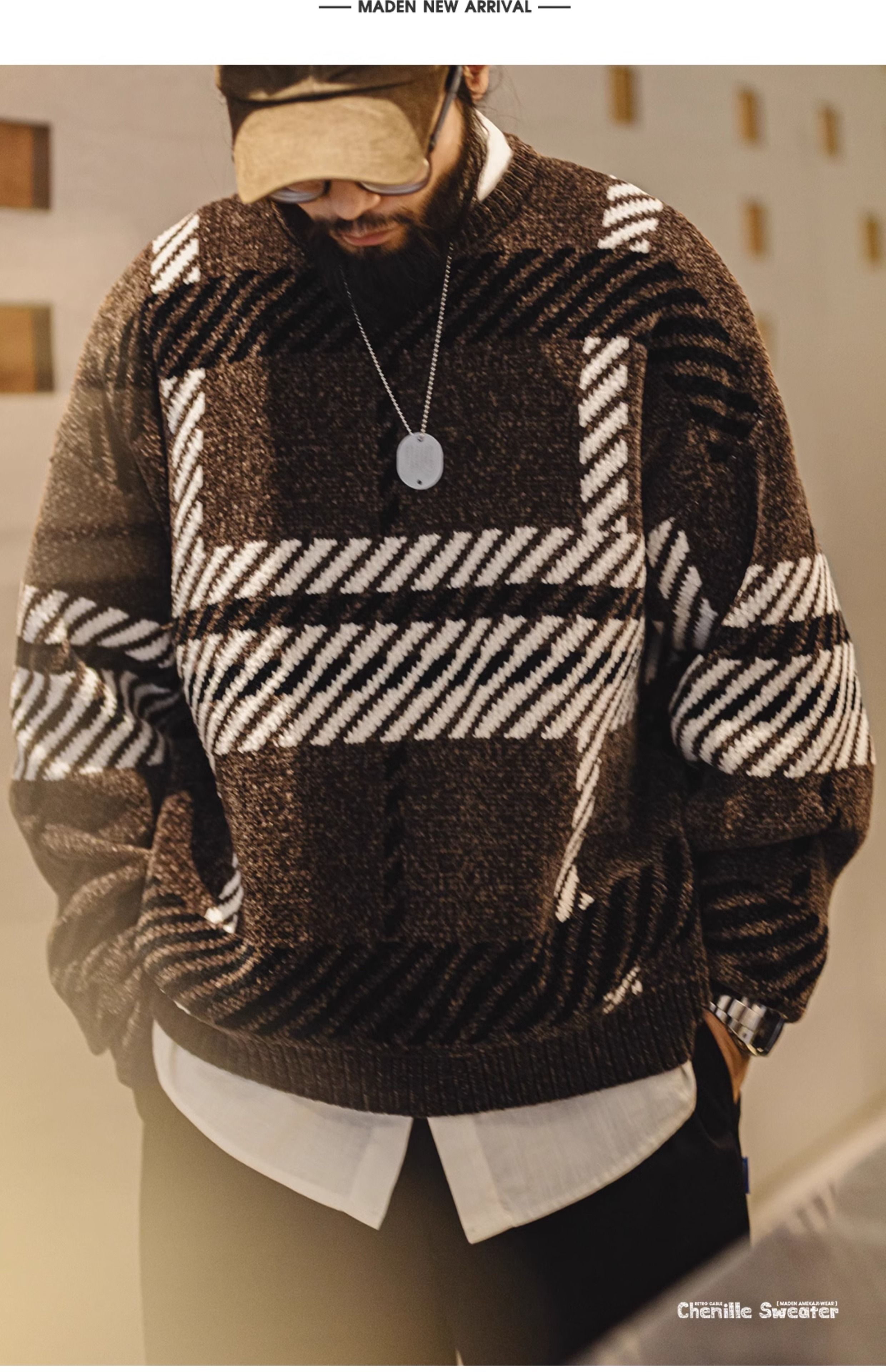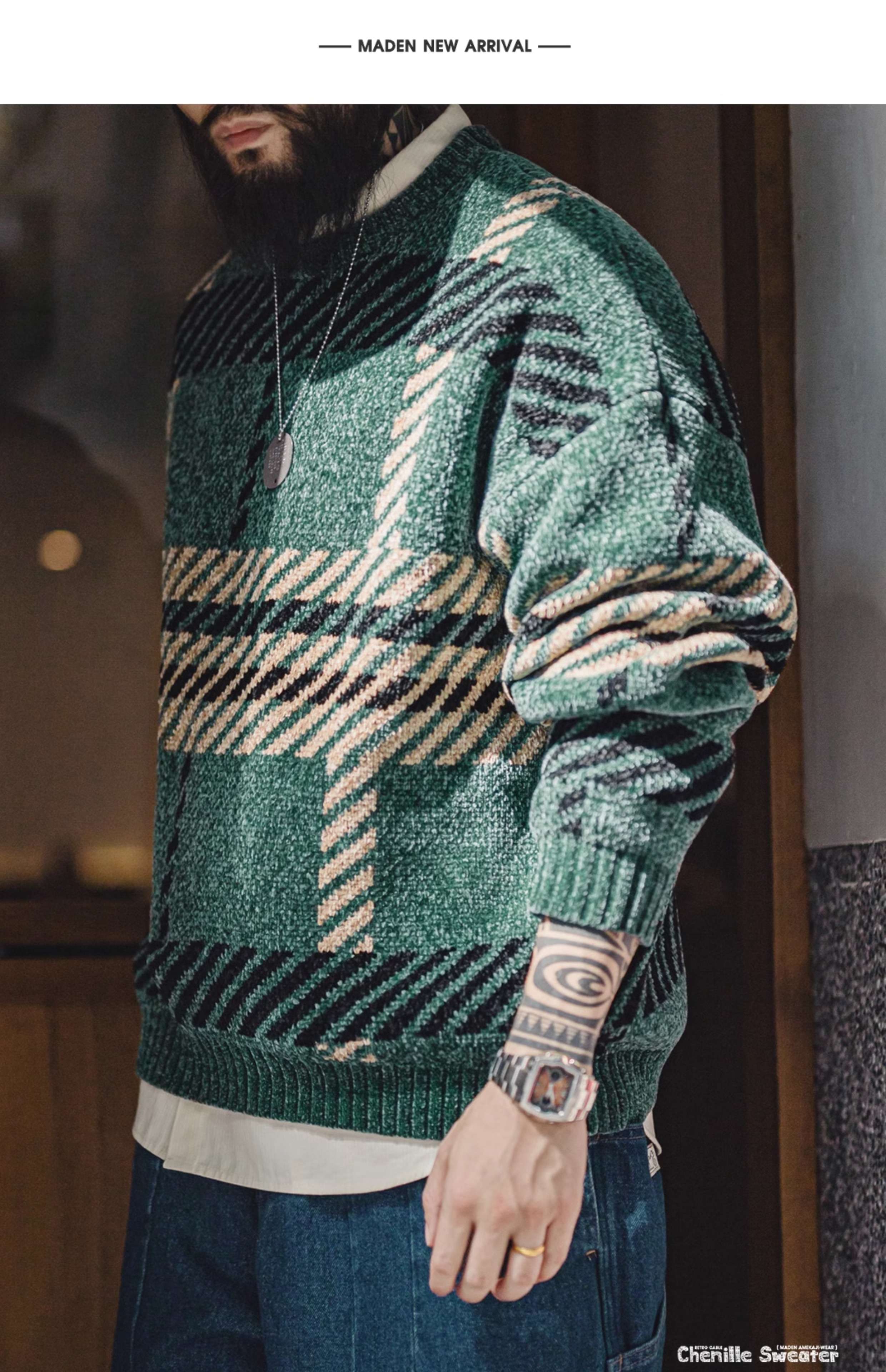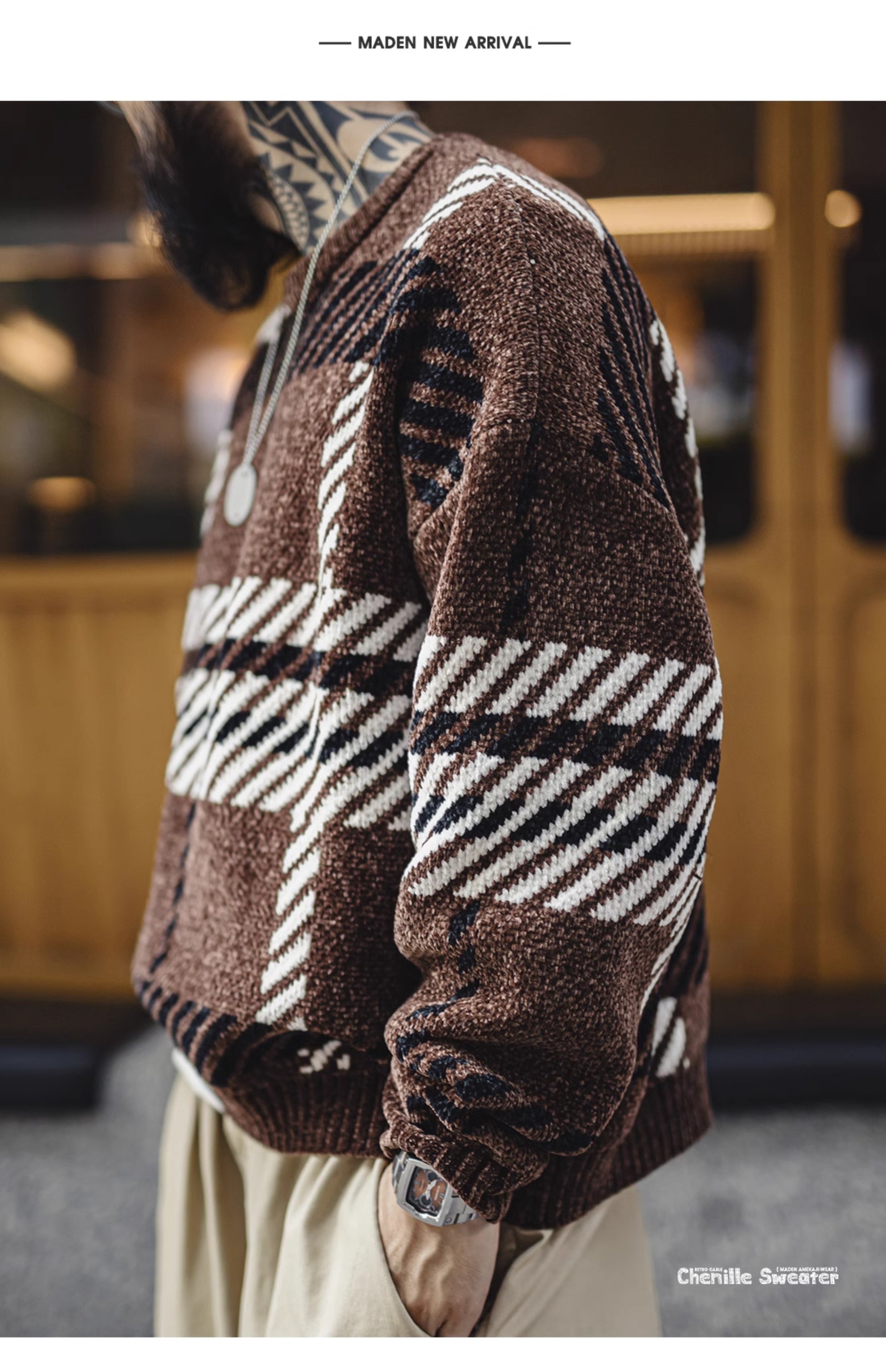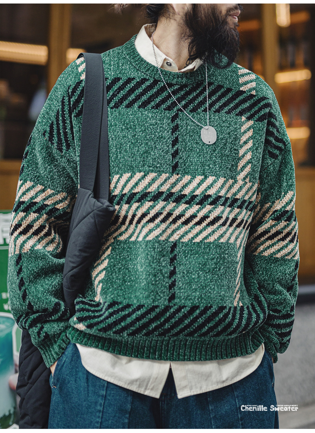 工装优选美式复古雪尼尔圣诞情侣毛衣加厚保暖打底绒针织衫男秋冬