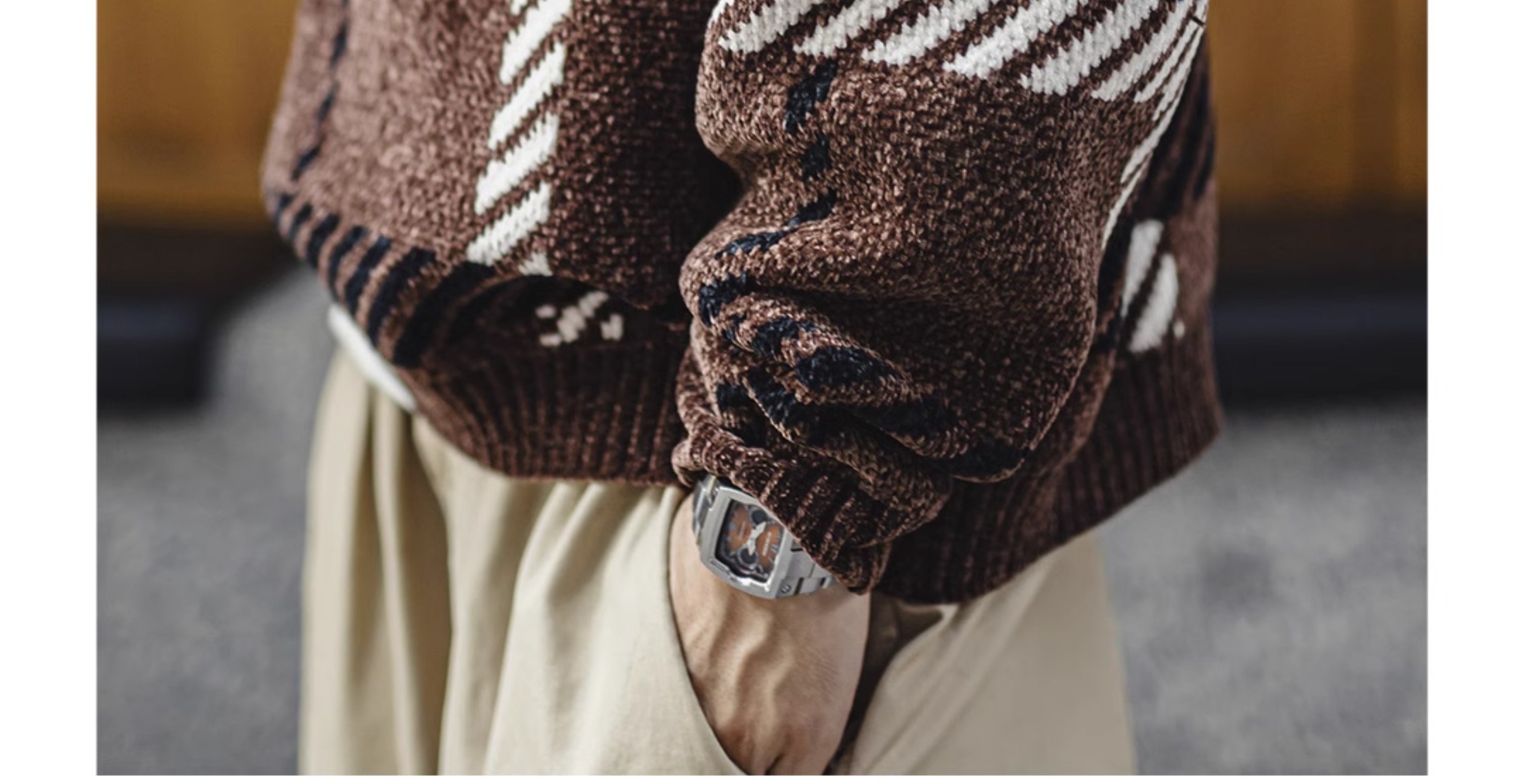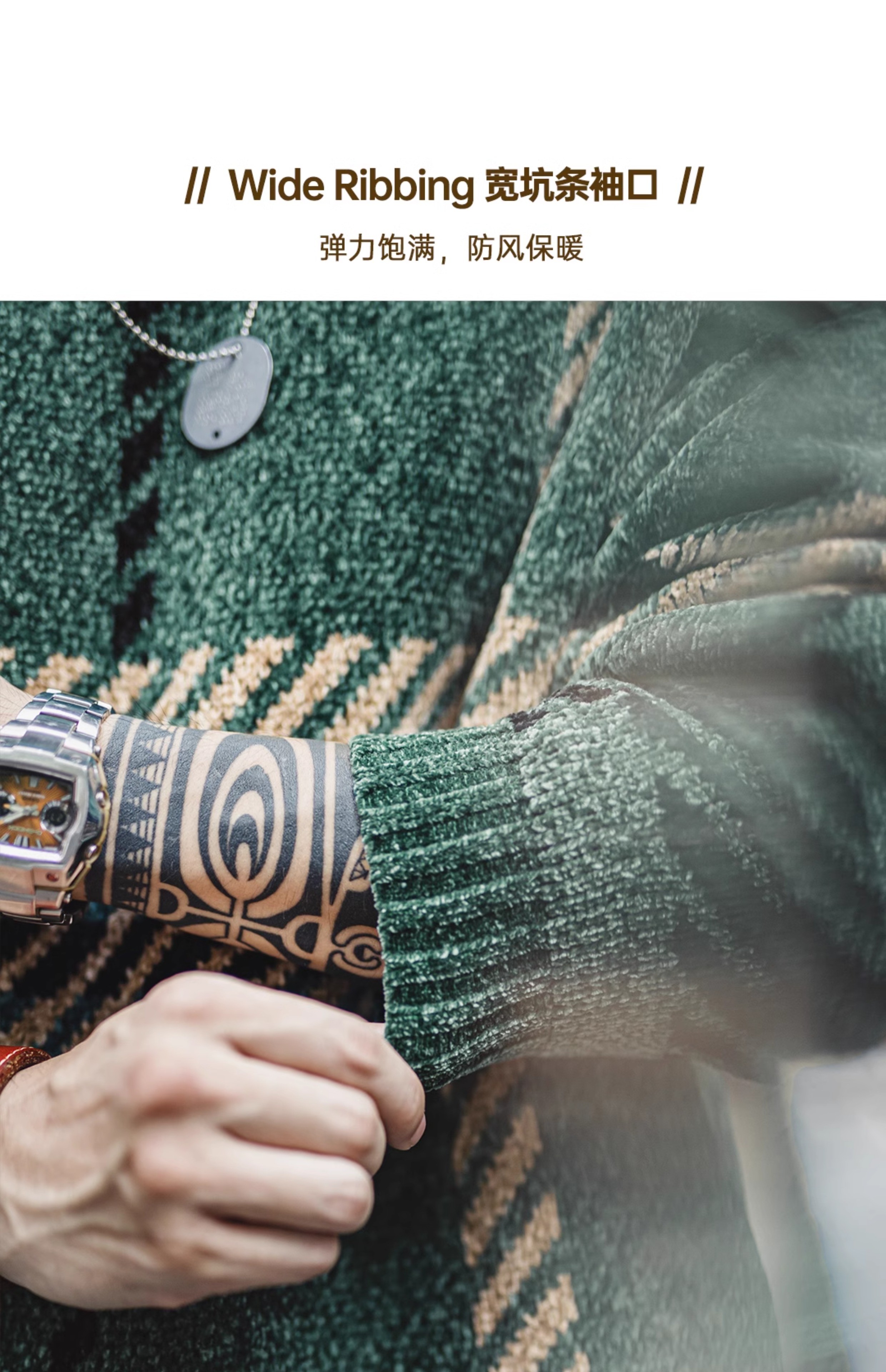 马登工装美式复古刺绣撞色毛衣保暖撞色外穿螺纹领口针织衫男秋冬