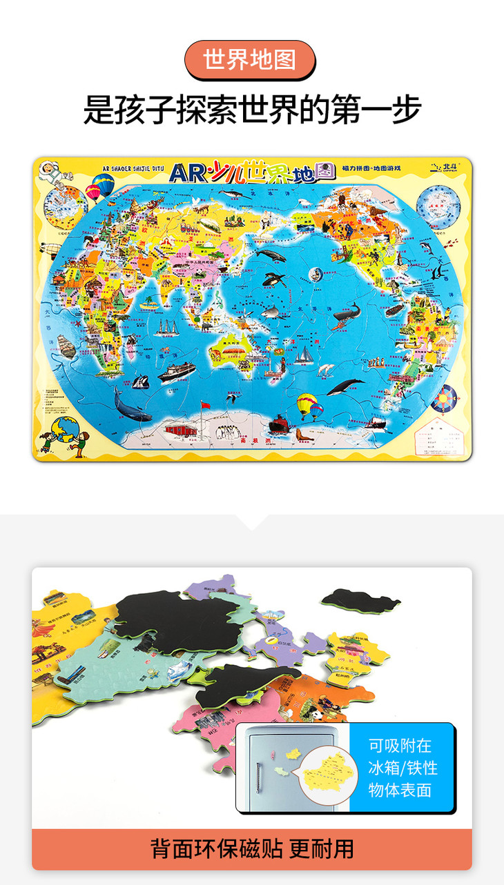 北斗 少儿AR磁力地图拼图 2个(中国地图+世界地图)