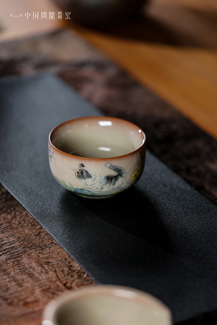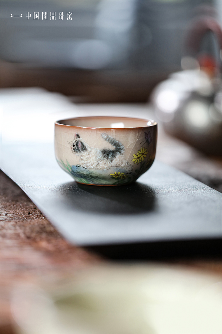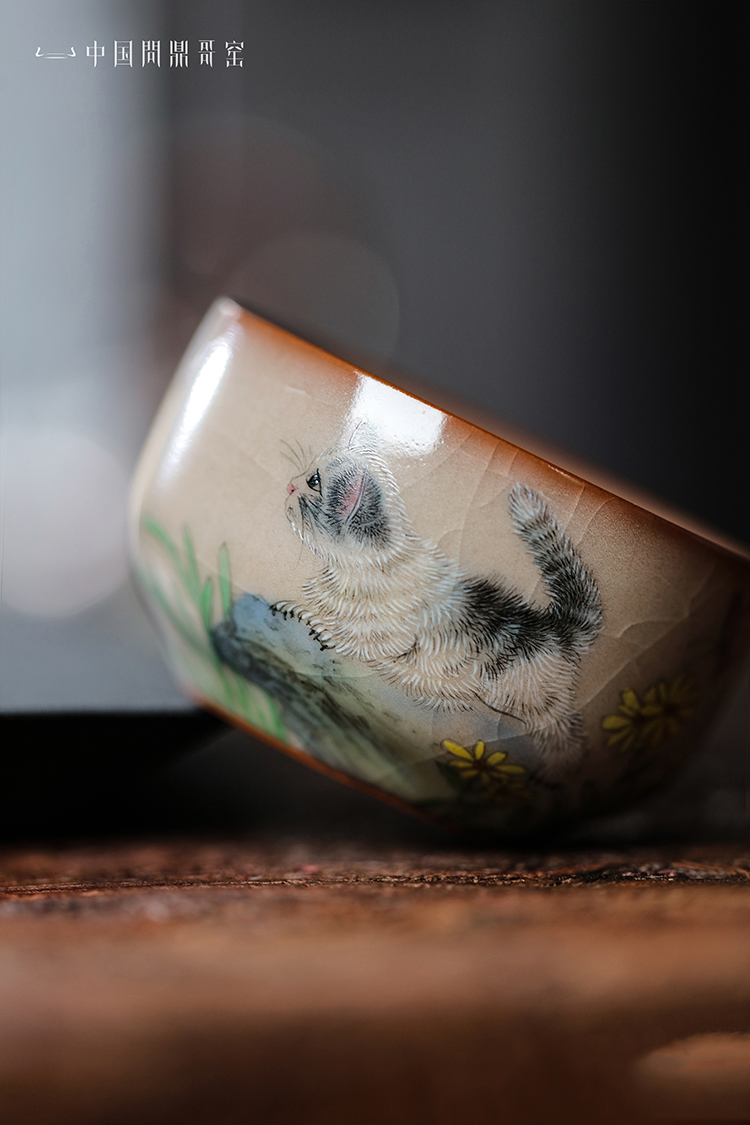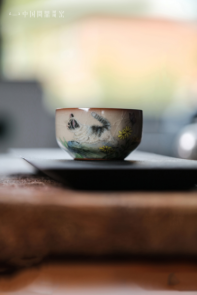 问鼎哥窑牛角款集玉杯(猫扑蝶)