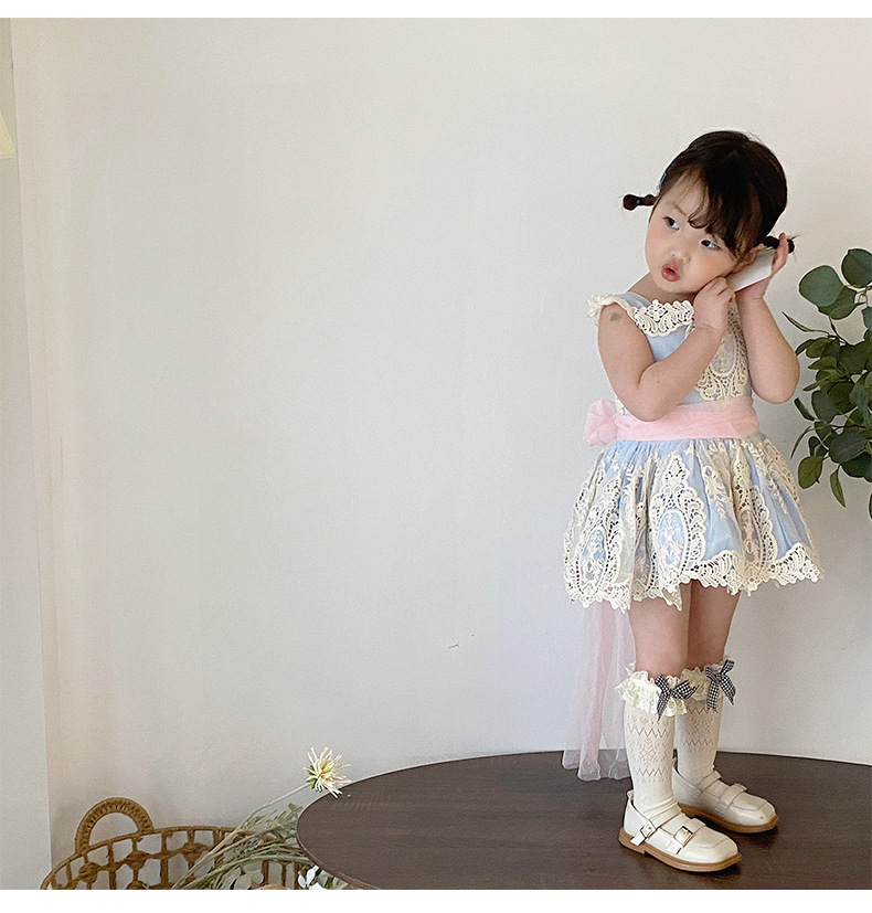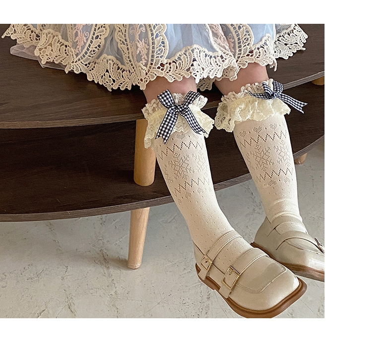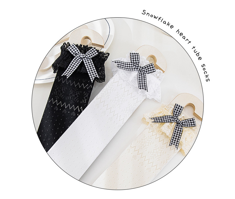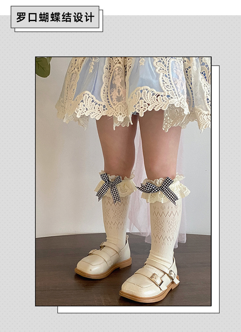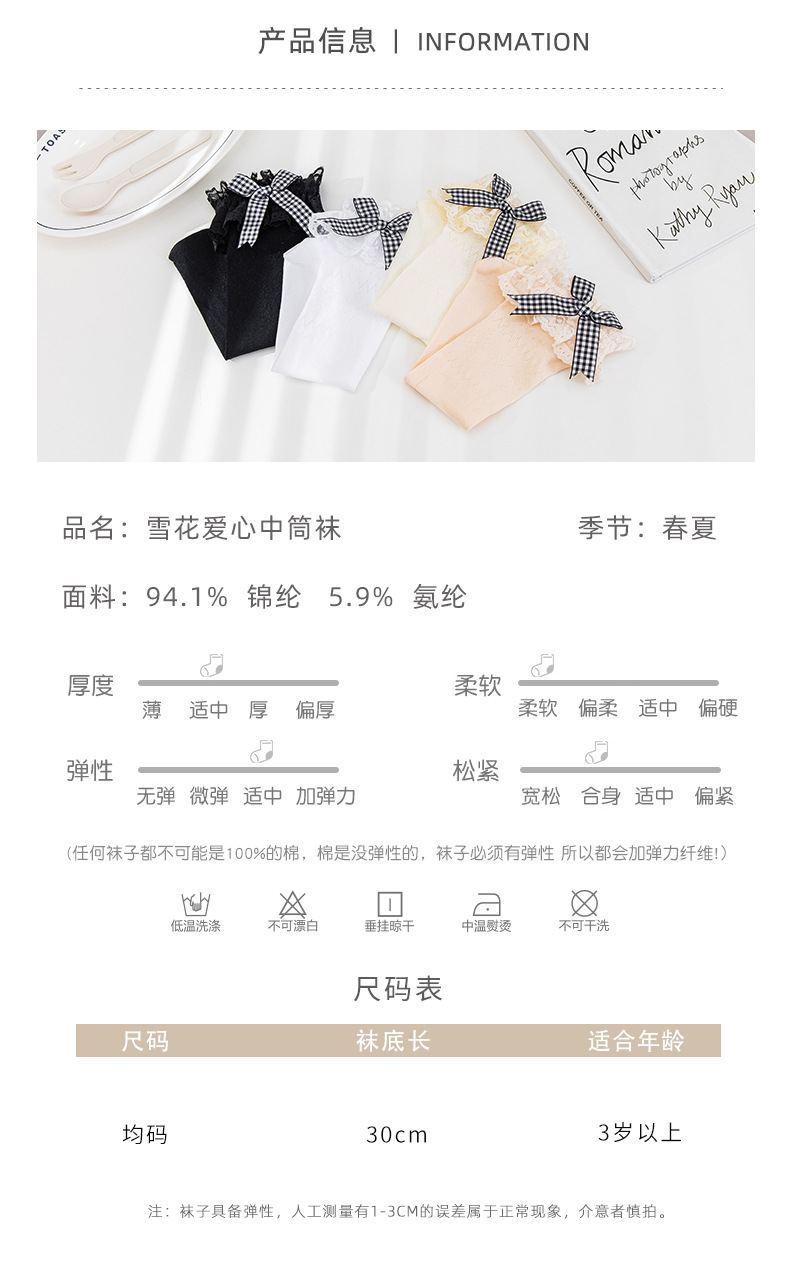 【2双装 雪花爱心中筒亲子袜】新款夏季网眼薄款女童袜子蝴蝶结洛丽塔蕾丝花边长筒公主袜韩国